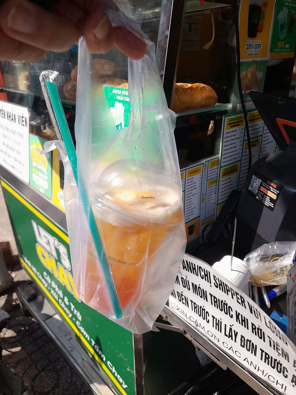 I've found it ladies and gentlemen. The ultimate, most delicious, the crispiest, the freshest, the best vegan bánh mi in Saigon. I'm blown away how good it is! I ordered a combo. My drink was a peach iced tea. So refreshing! The perfect combo ever! Total bill was an absolute bargain at 48,000 Dong! To top it all, what a lovely mum and son team! He speaks fluent English.