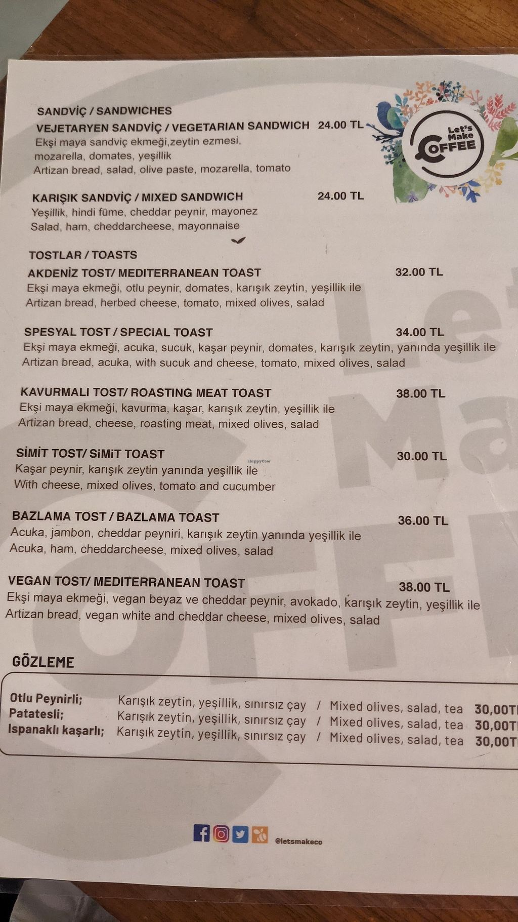 Nice place that serves coffee, and tea but also has a food menu and desserts. They have alternative milk like soy. They also have a few vegan food options including Turkish breakfast. Nice atmosphere, good place to work from with decent WiFi.