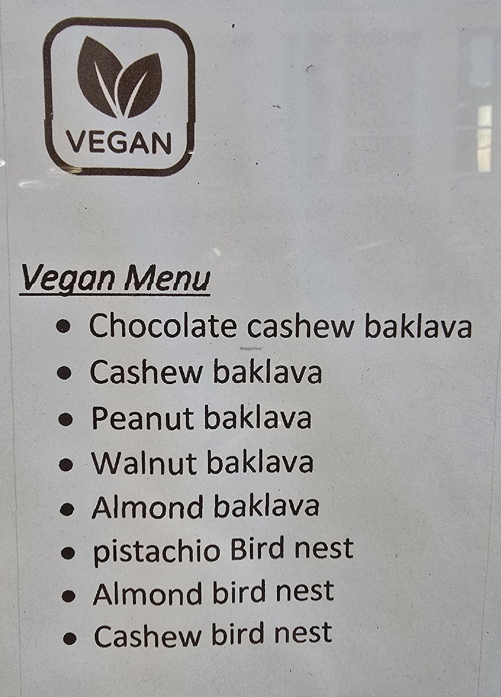 We had all of the vegan baklava and loved all of them. The owner is very kind and the little sweets delicious. Our faves were the bird nests ♡ (the coffee was also excellent!)
