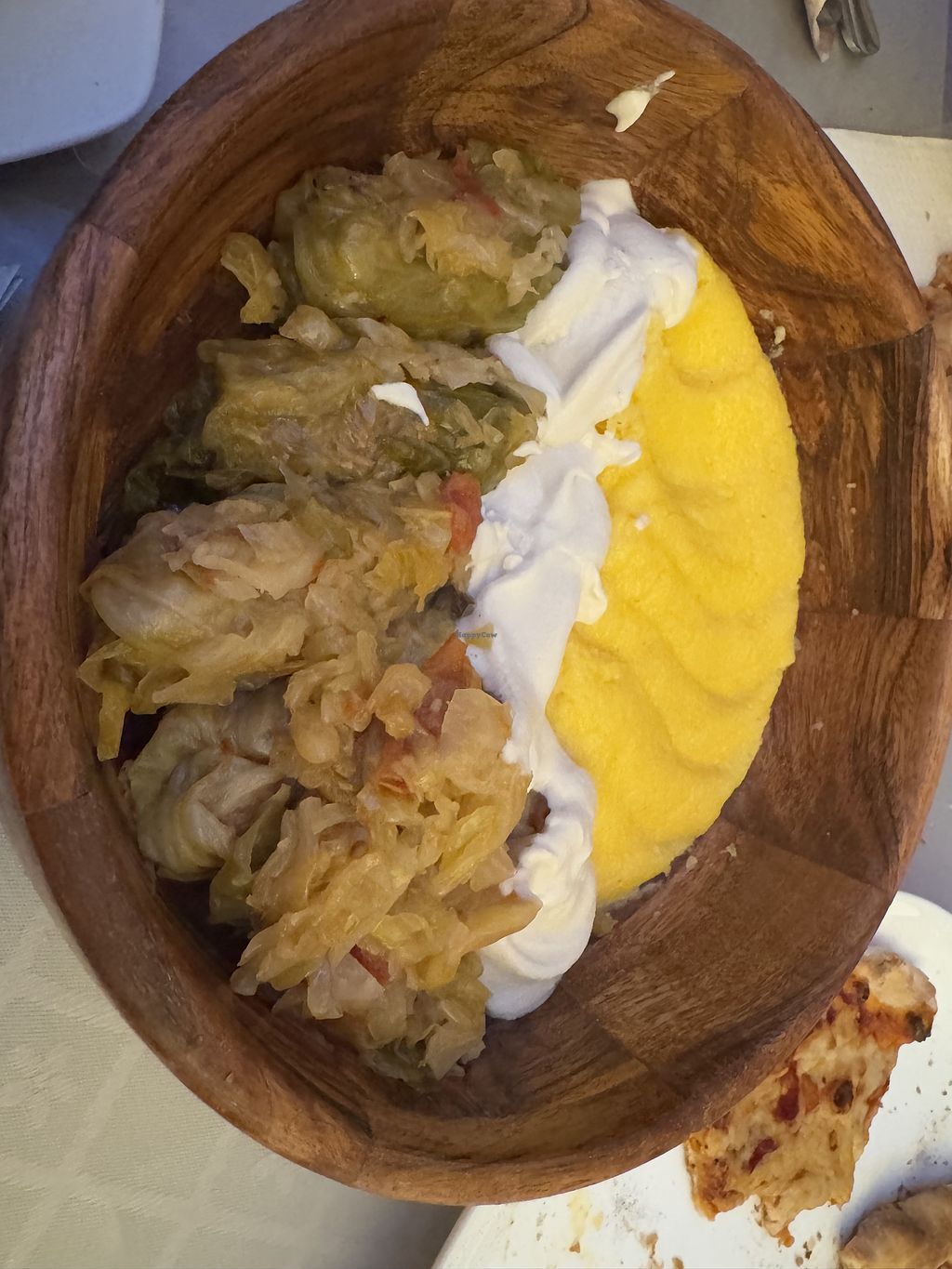 I had traditional soup and sarmale, some pizza with the best vegan cheese, the tastiest salad I've ever had, yogurt and vegan cheese with grapes