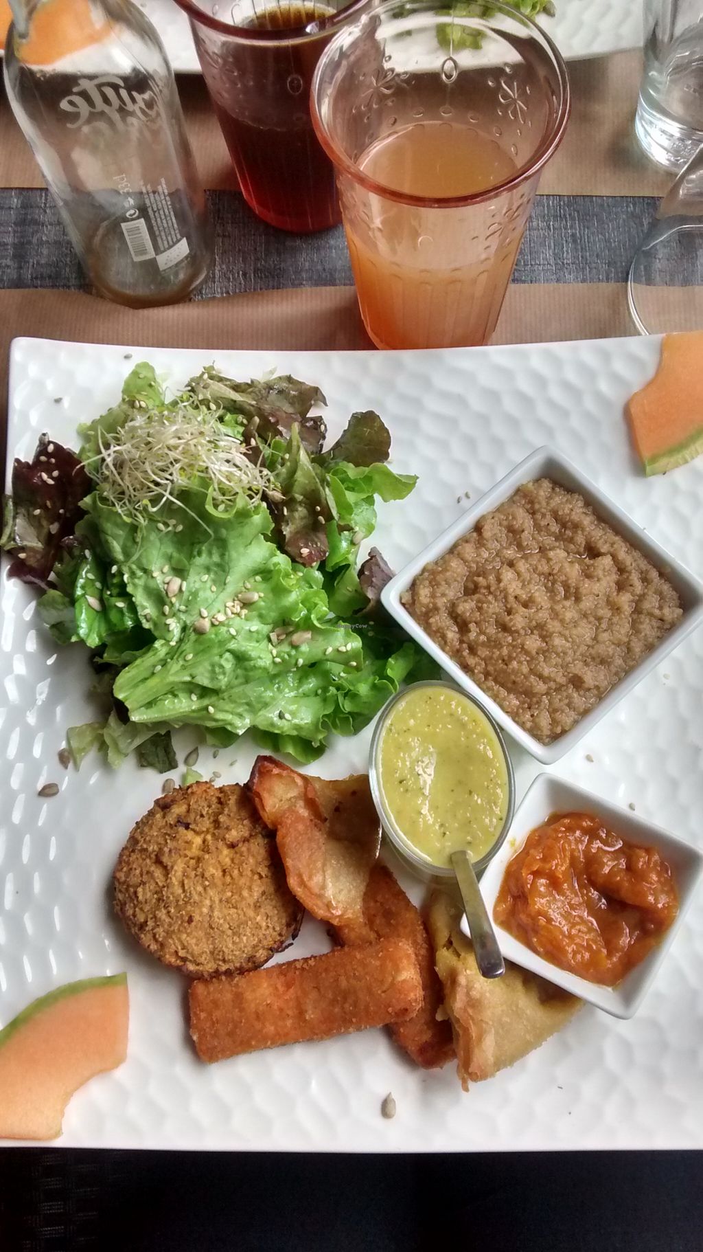 Read moreThey have several veggie/vegan salads on the main menu and also a special vegetarian dish made of salad, tofu steak and samosas + the side dishes "of the day". So if you choose this option make sure to ask the waiter is the side dishes are vegan!
