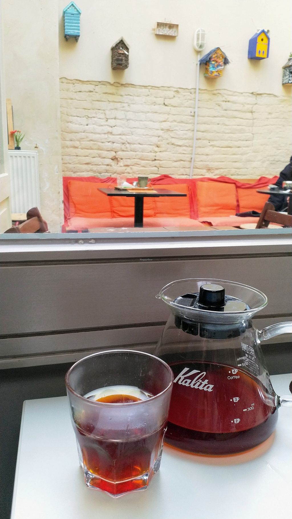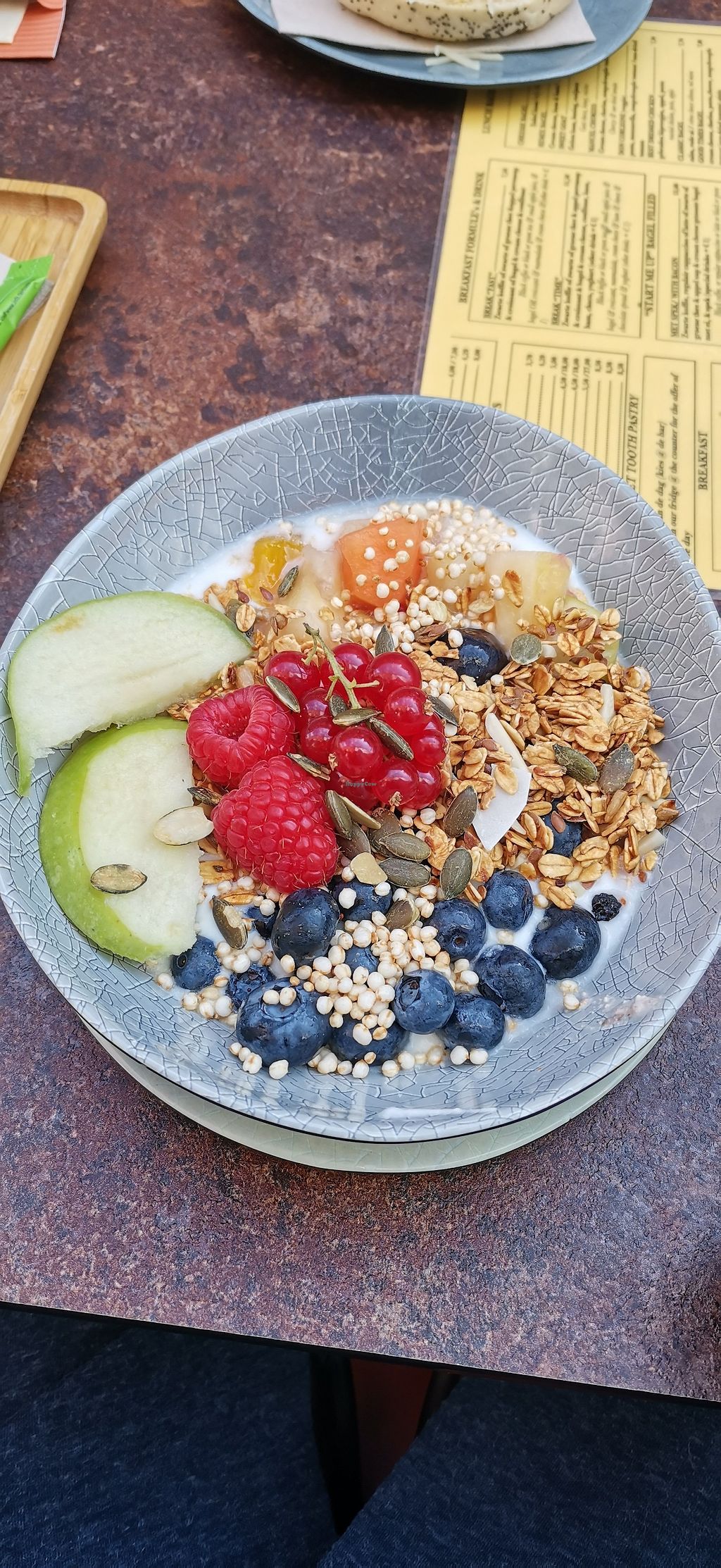 Amazing coconut milk and red pepper soup and plain bagel! Ignore the b…