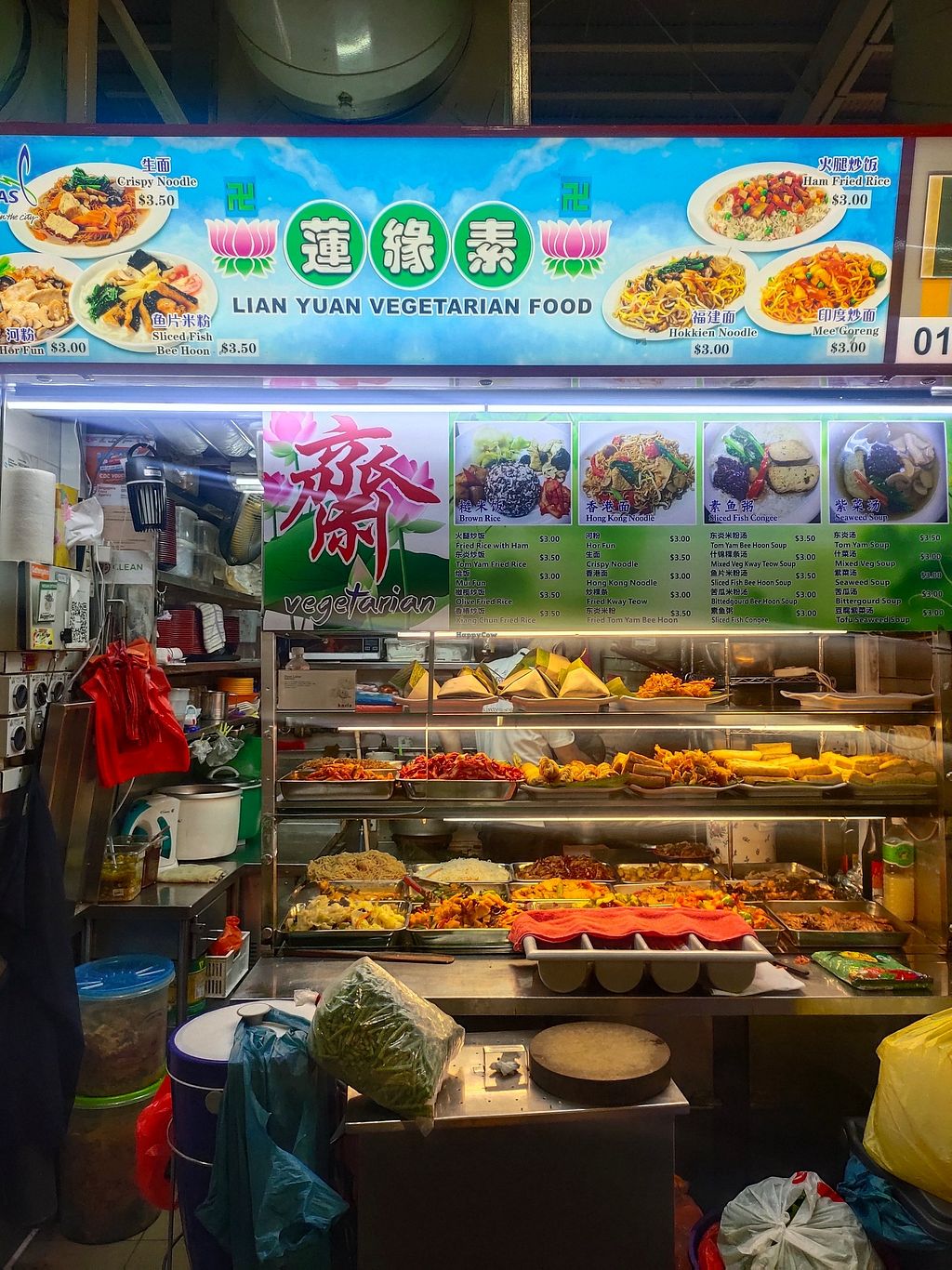 莲缘素 is a stall in Geylang Bahru Food Centre. Serves daily special like bak kut teh, curry noodles, kway chap. Zhi char dishes are available after 5pm. Reported closed November 2022.