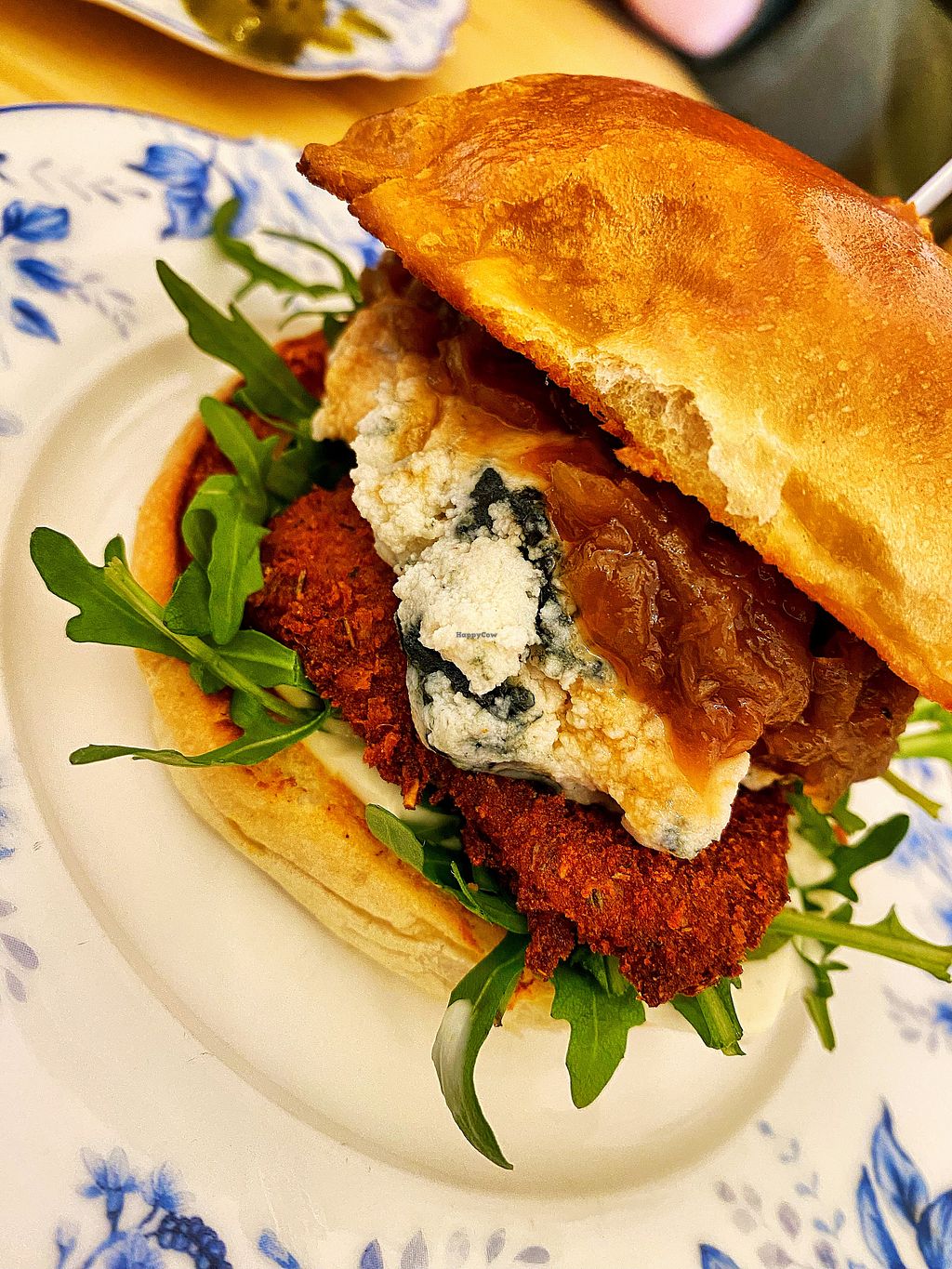 New Burger! Caramelised onions & vegan blue cheese