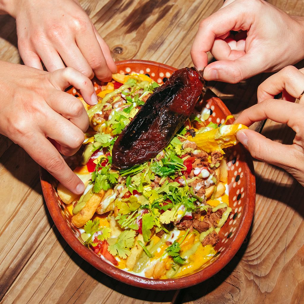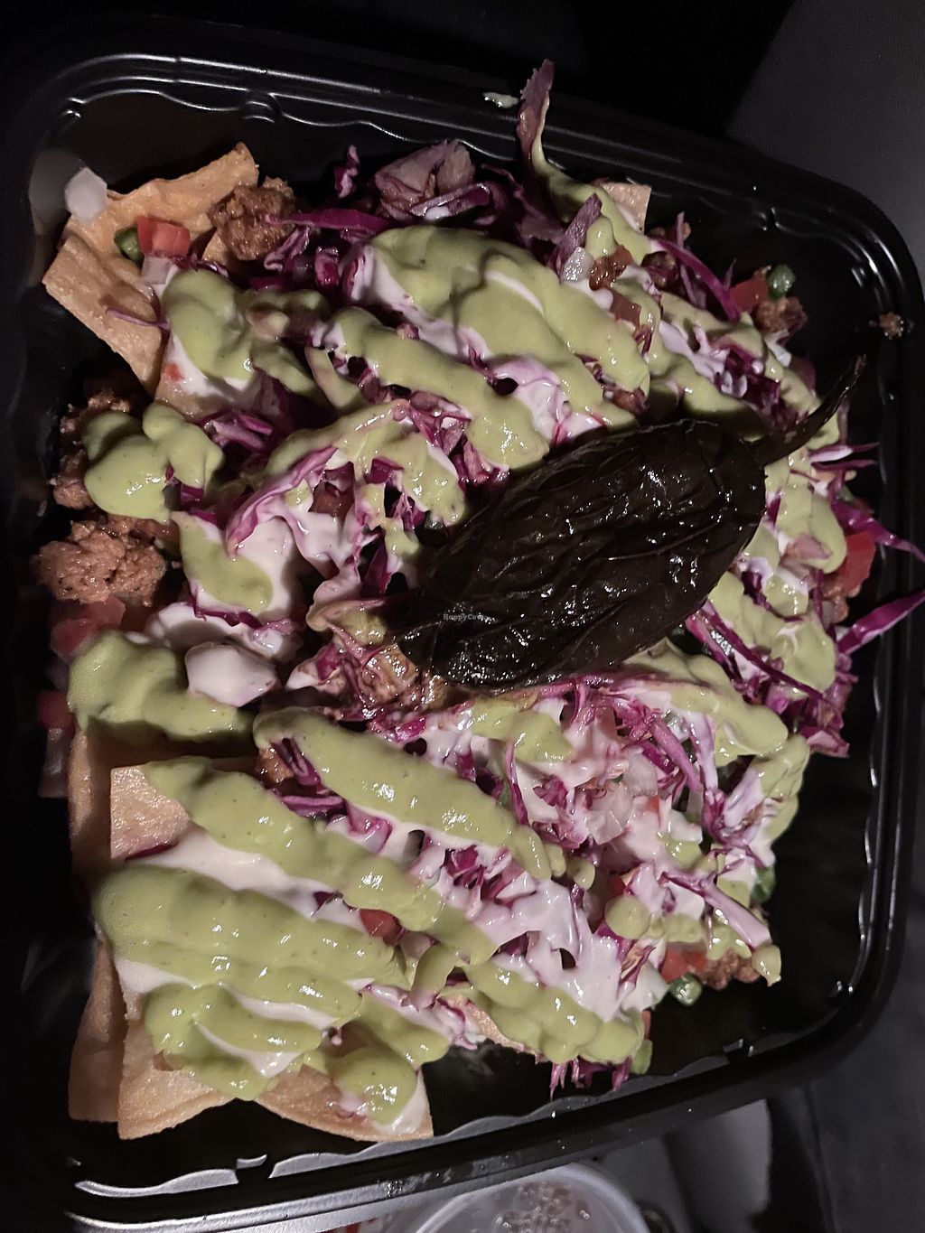 Chips n queso! The vegan sour cream is v good. Love how they garnished…