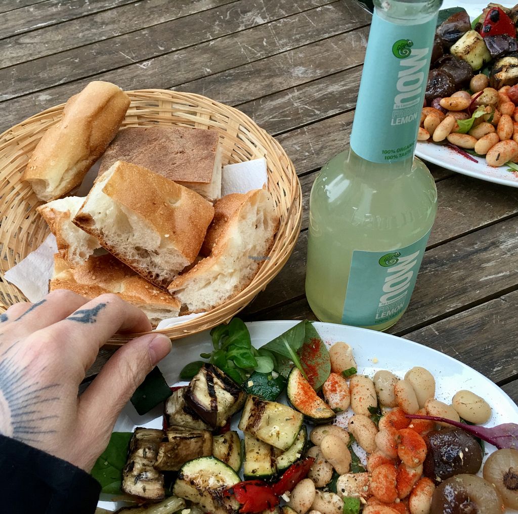 Super friendly staff. Mediterranean food (falafel, olives, pickled onions, beans, mushrooms, etc.; see photos). Pizza, too. Many places outdoors! In the middle of the inner city, not too far from central train station. Nice lemonades. Gladly, some garlic-free options.