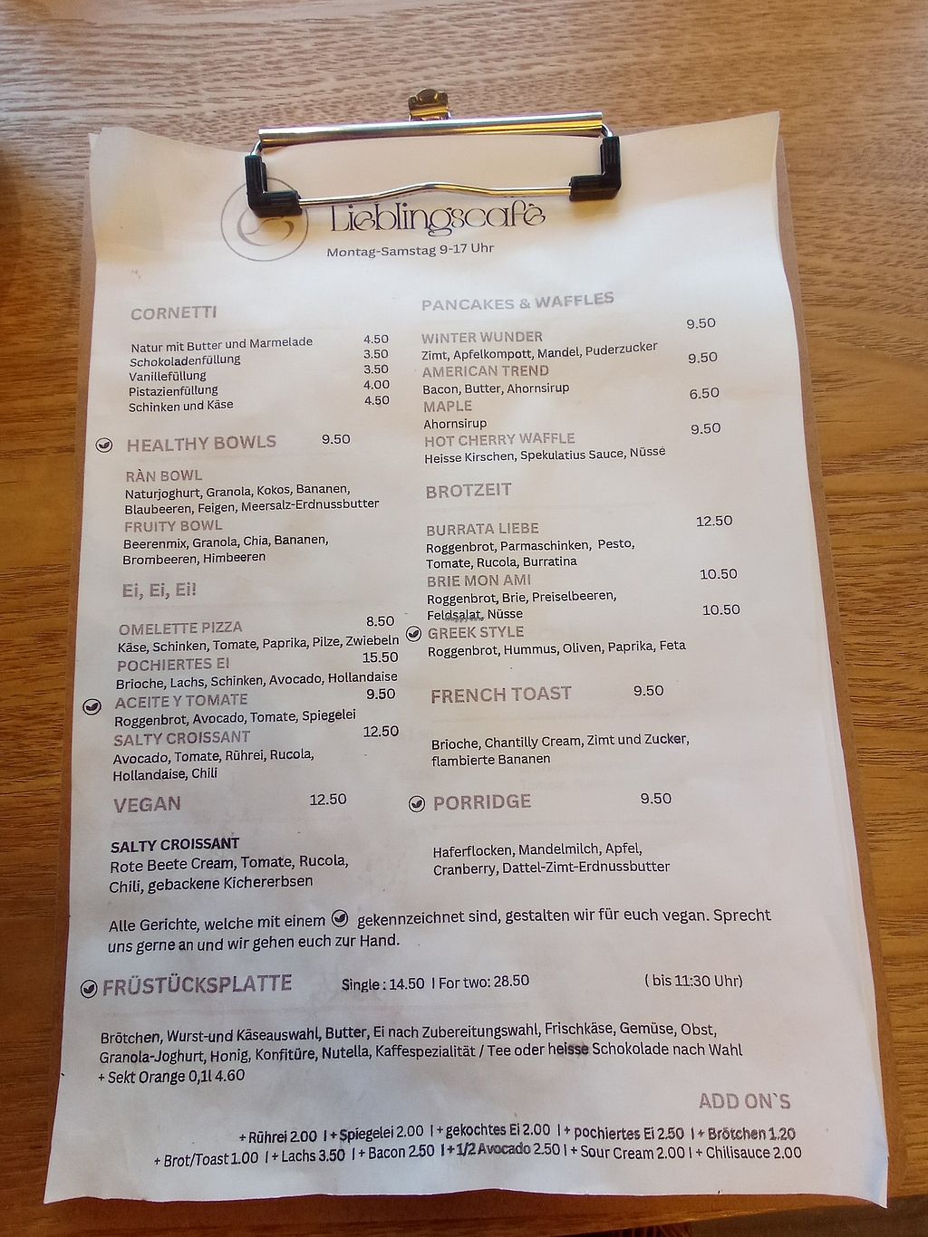 Lacto Ovo International Beer/Wine Take-out Honey Café offering a few vegan items such as bread with avocado & tomato or hummus, porridge and bowls. Non-dairy milks available. Open Mon 08:30-18:00, Wed-Fri 08:30-18:00, Sat-Sun 09:00-18:00. More