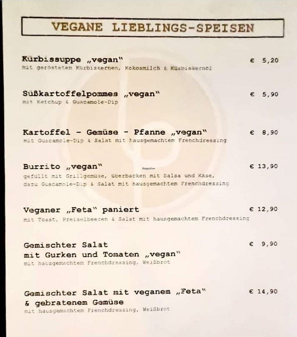 Ausschnitt aus der Speisekarte