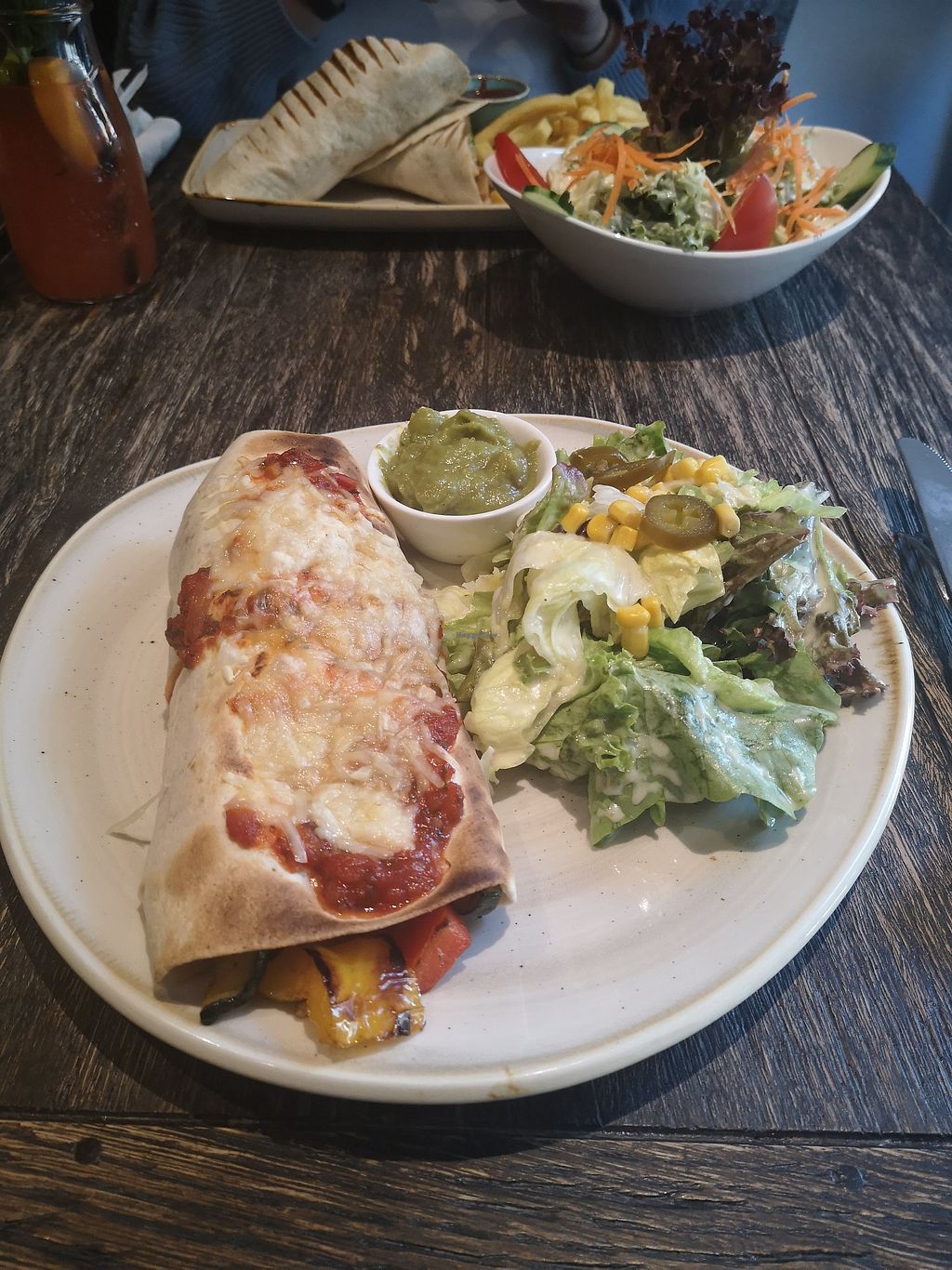 Veganer Burrito mit kleinem Salat mit French Dressing und (leider fert…