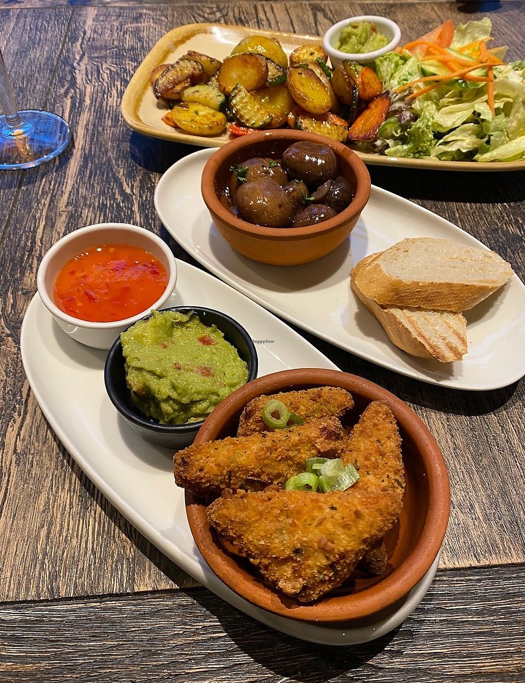 Kartoffel-Gemüse-Pfanne mit Salat; Tapas (marinierte Champignons, Gemü…