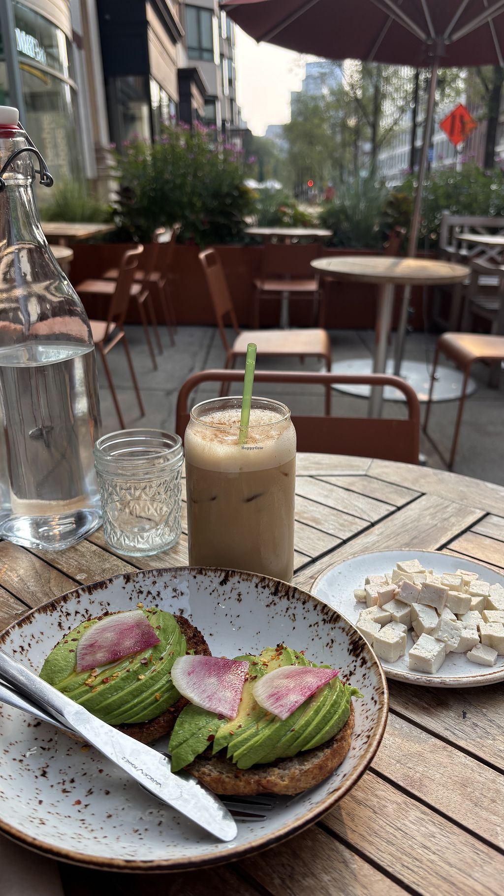 Stopped here while in Boston and was so impressed. I’d like to come back another time to try more of their menu. I appreciate their dedication to natural/whole ingredients. The glow time smoothie was good, pretty similar to most other smoothies. Strawberry basil lemonade was definitely more strawberry forward but tasted so good. The avo toast was one of the better I’ve had at a restaurant, the bread it was on had a unique flavour I appreciated. I got a side of tofu, this is probably on me but it was just warm cubed tofu (no seasoning.) The tahini latte is fire, has such a nice taste that isn’t too sweet.
