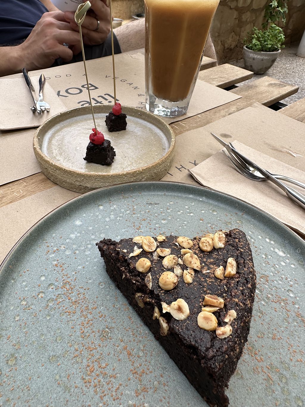 We wished we had found this lovely place sooner but we had already eaten and we were only in Kaş for the day so we just had room to squeeze in a tahini halva with peanut butter and ice cream - so delicious. It was sweetened with carob and banana and was lovely. The incredibly nice owner brought out complimentary Turkish tea for us. They are the real deal even making their own tofu and we will be back like a shot if we are in the area again for a full meal. There is also a little section in the shop where lovely locally made ceramic items e.g. cups, candle holders, and vegan-motifed bags are for sale (please note the shop is cash only).