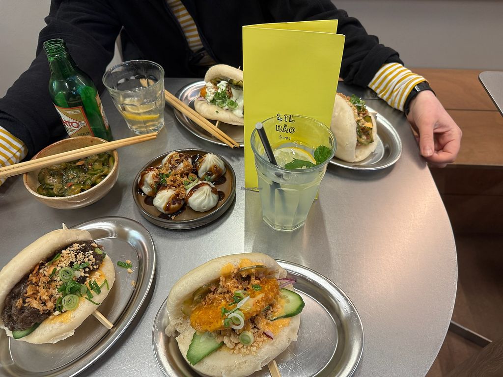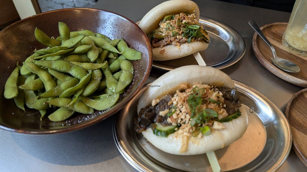 Does what it says on the tin, huge vegan bao buns, interesting flavour combinations. There is also noodle soups, nice dishes and sides. 100% Vegan. It's small and casual, order from a QR code. 2 of us went on a Friday night and got a table fine