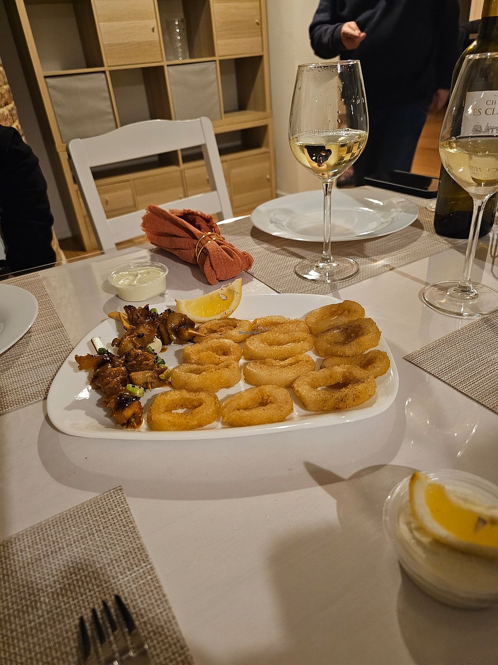 Calamares, chicky satay