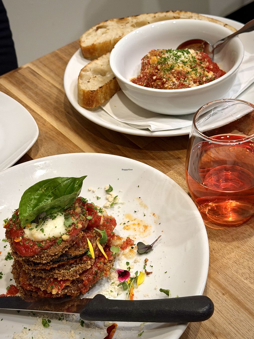 Rigatoni with artichoke cream sauce, eggplant, sun dried tomatoes.