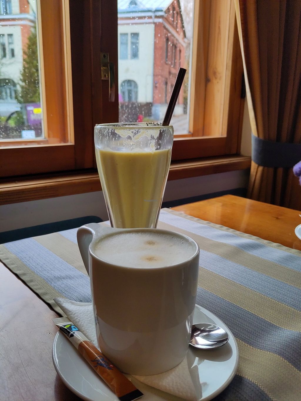 I enjoyed oat-milked latte with coconut smoothie. The place is warm and welcoming. Perfect to wait between two trains. There are quite some options for meals as well, food seems a bit expensive though