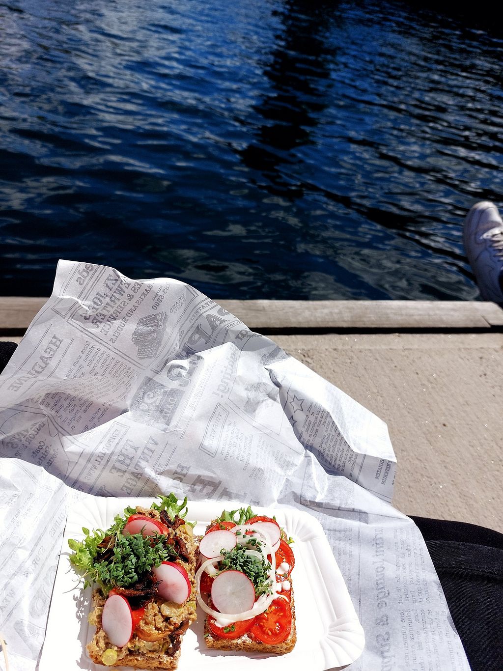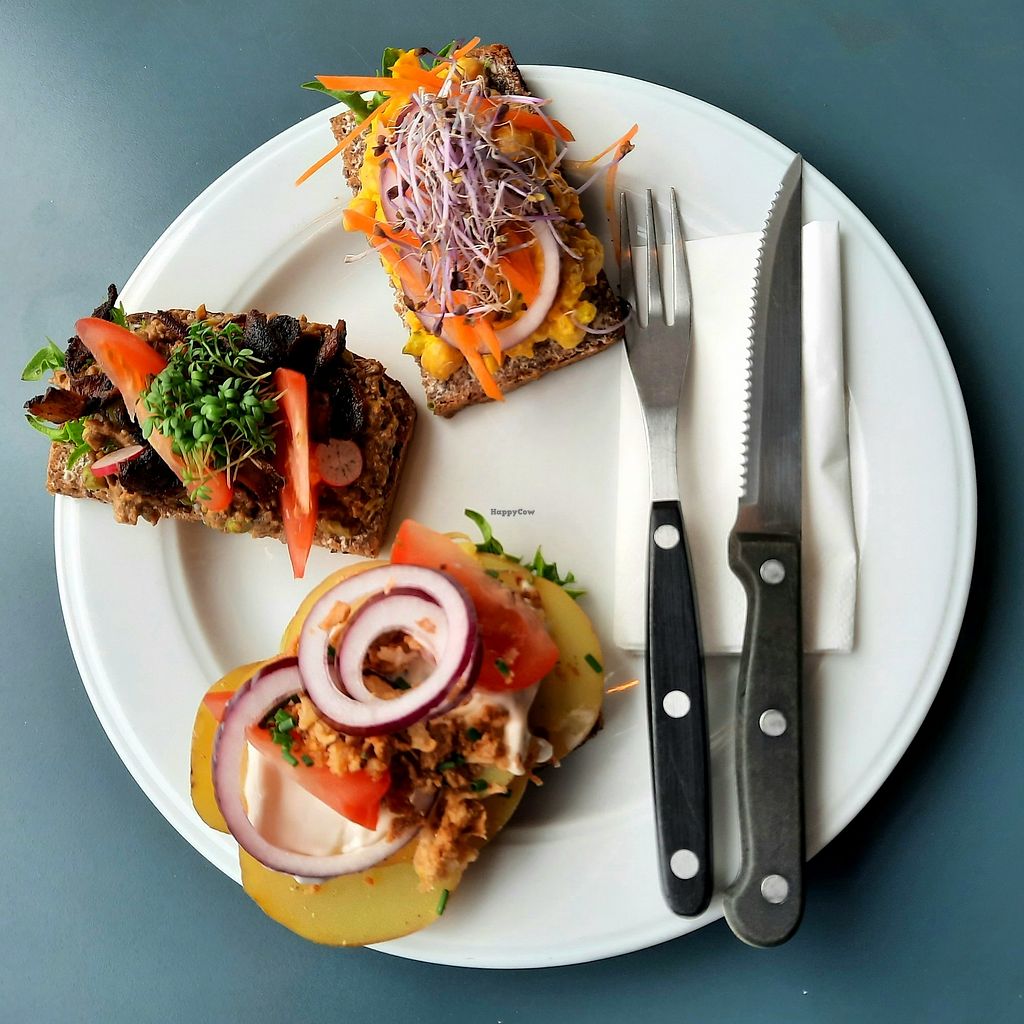 Mushroom salad Smørrbrød on the bottom - above also chickpea salad