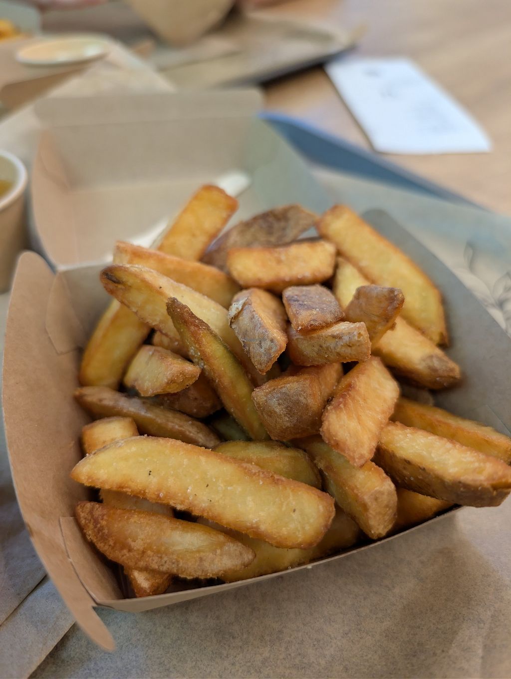 Beste vegane Vish and Chips, die ich bisher gegessen habe, wirklich hammer gut! Burger sind auch ganz lecker, aber nichts so besonderes.