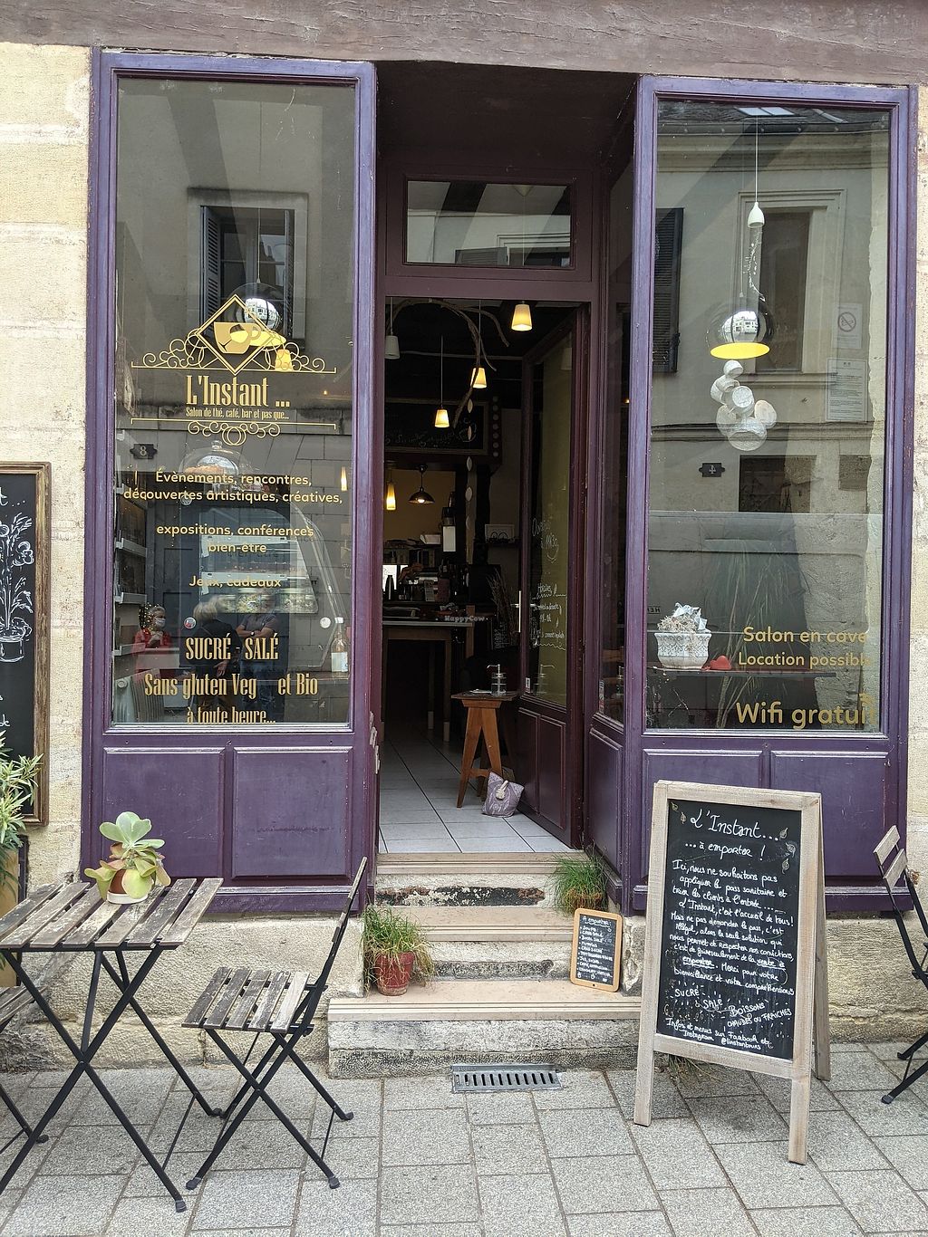 L'instant is a gorgeous place for tea, coffee, cake, and a sandwich. There's a huge variety of teas and a good selection of coffee too. The vegan sandwich on offer was very tasty and healthy, packed full of vegetables, hummus and (my favourite) pickled red onions. All the cakes on display looked delicious and the cheesecake I had was perfect. There is also the possibility of buying local crafts and art, which adds to the feel of the cafe. I'd recommend this place to everyone.