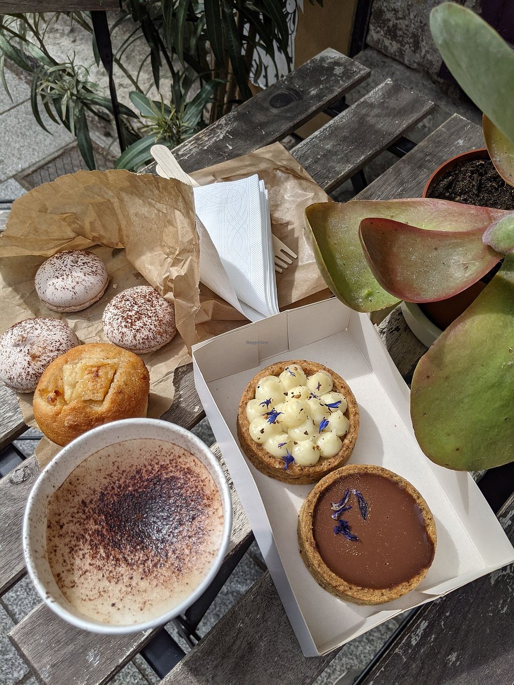 Best vegan patisserie I have ever tasted (when do yo ever find real vegan patisserie?) and a cosy, quiet space with nice atmosphere.