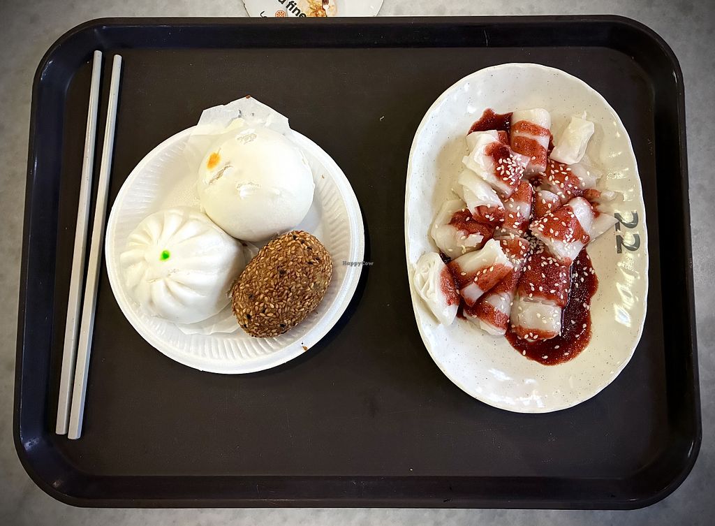 Selection of Dim Sum; Fragrant Vegetable Pau, Red Bean Paste Bao, Peanβ¦