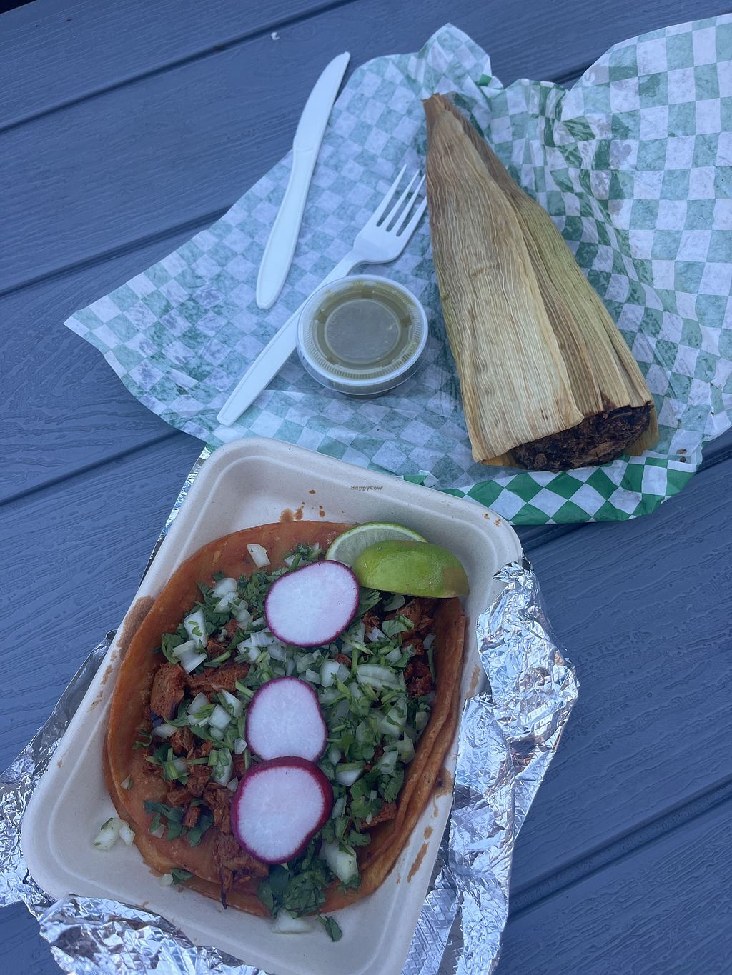 They have a menu like you would not believe. A huge vegan menu! Surf and turf tacos, Asada tacos Birria tacos, vegan quesadillas with steak or chicken, etc. Pure heaven!