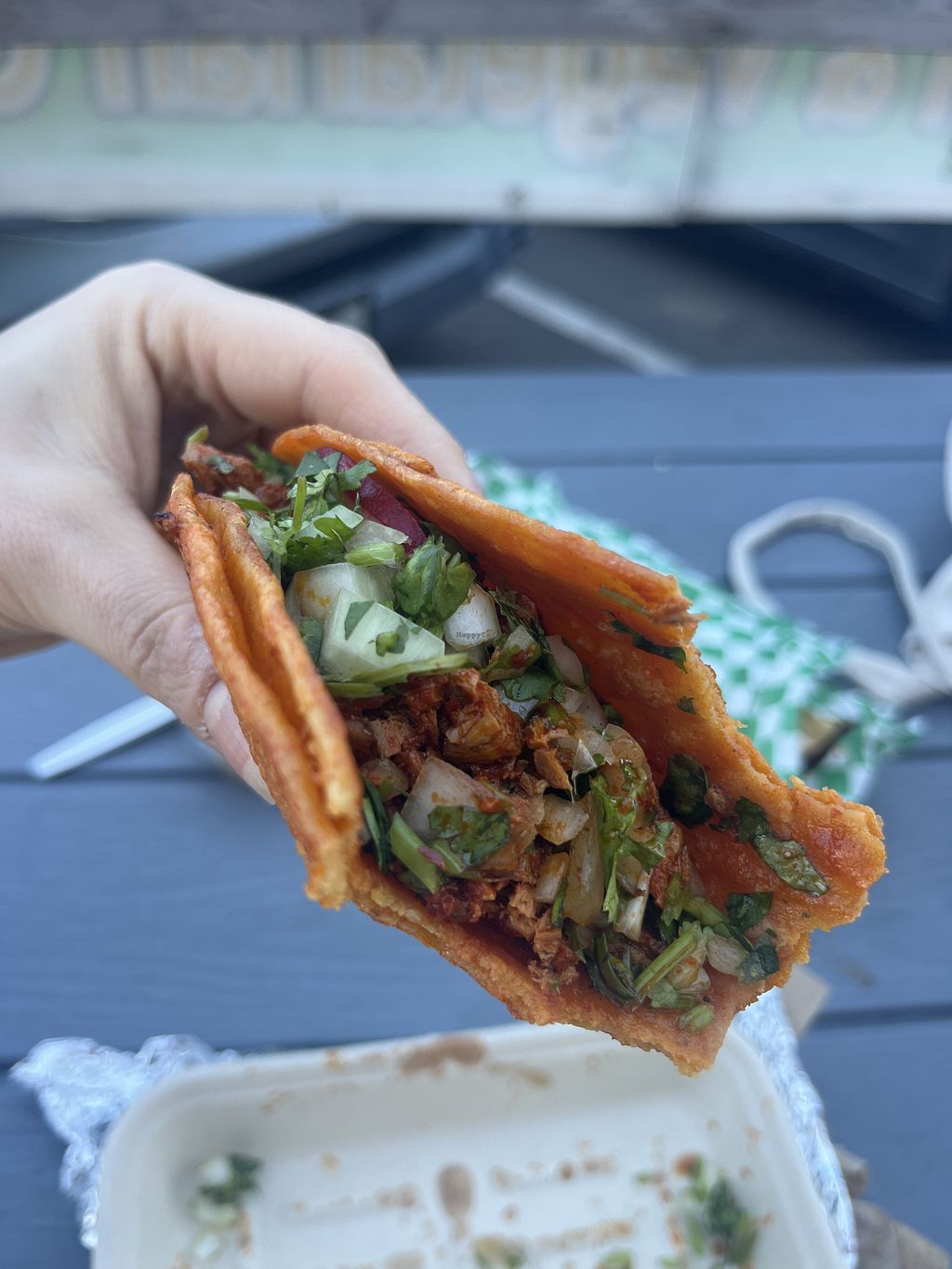 Vegan options are to die for! I had a vegan carne asada torta and a shrimp-less burrito that was full of flavor! Portions are very generous and would definitely come back! There’s a few tables outside where you can eat as well.