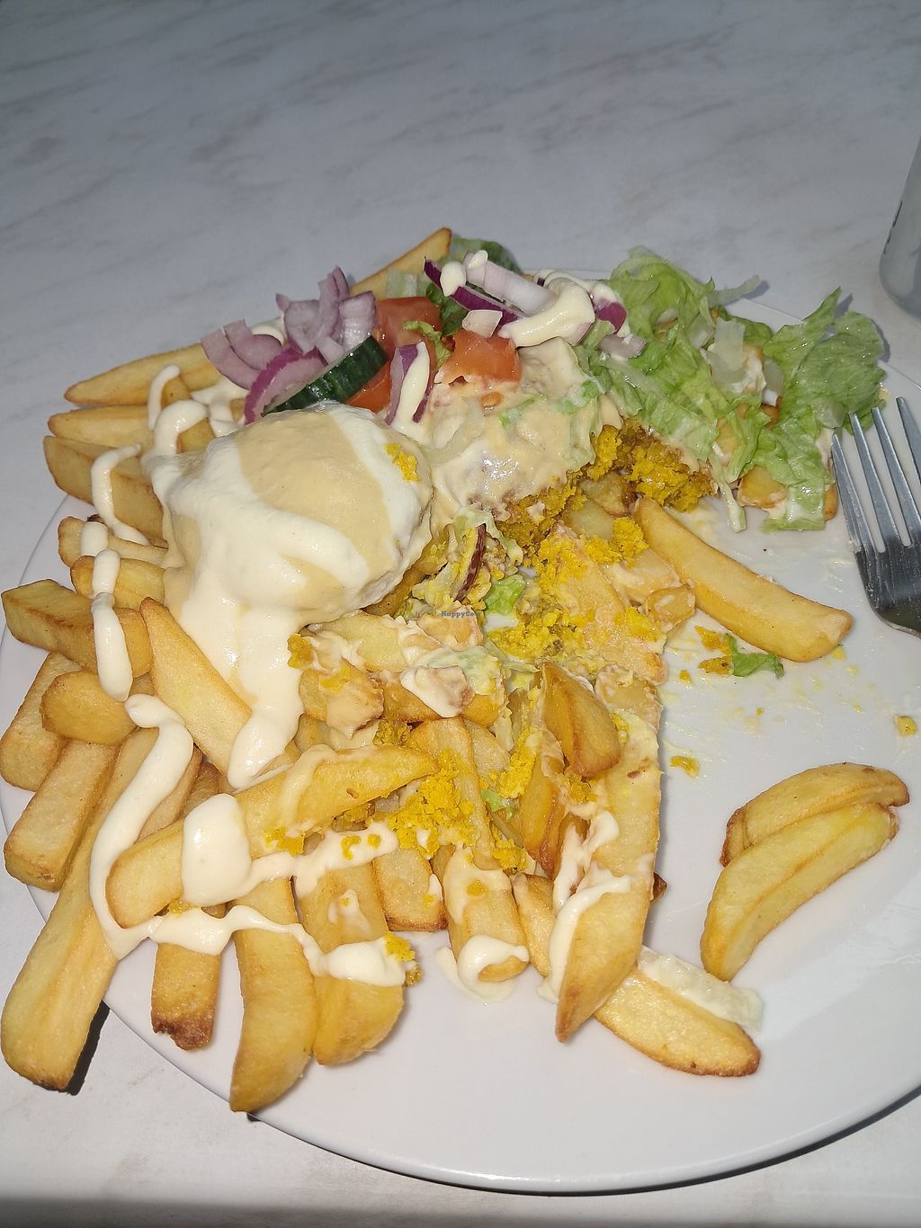 Falafel with humus , salad and chips. Forgot to take a photo until hal…