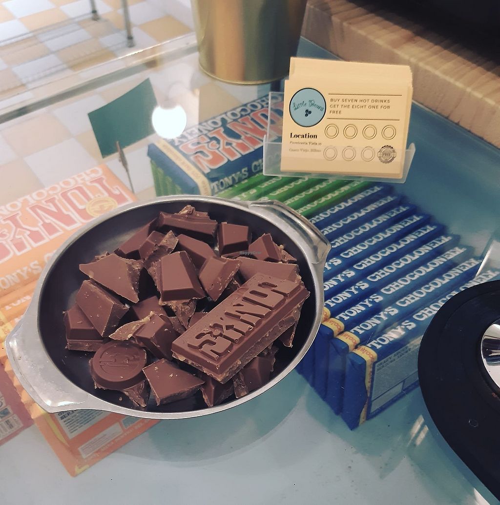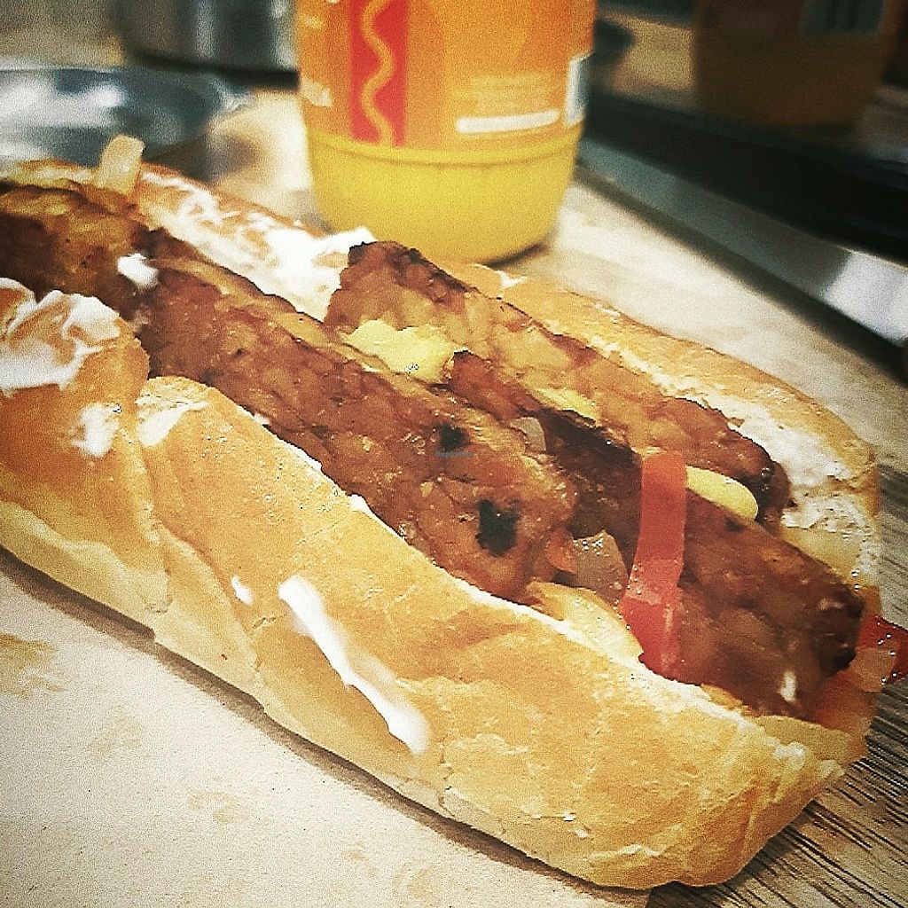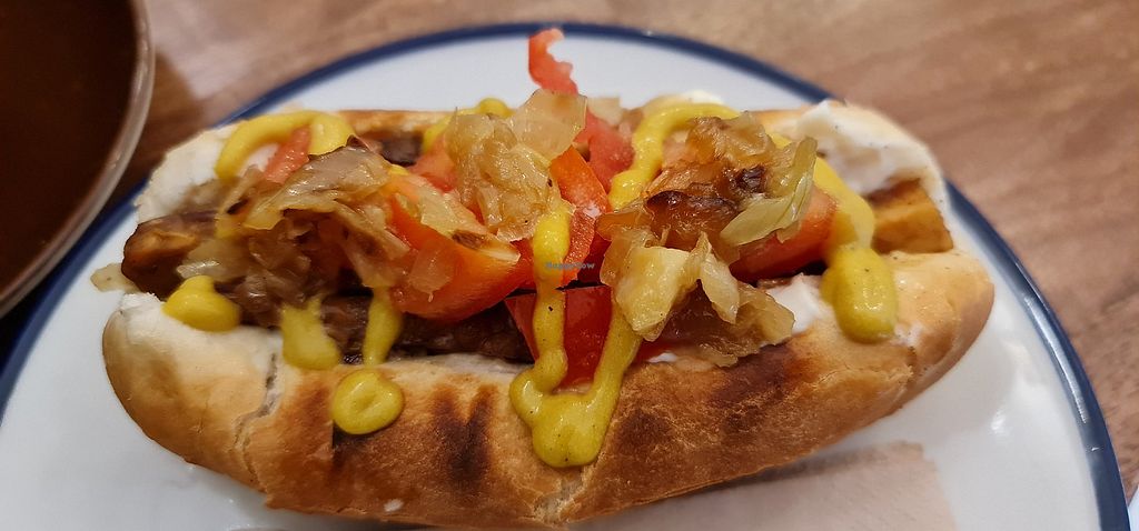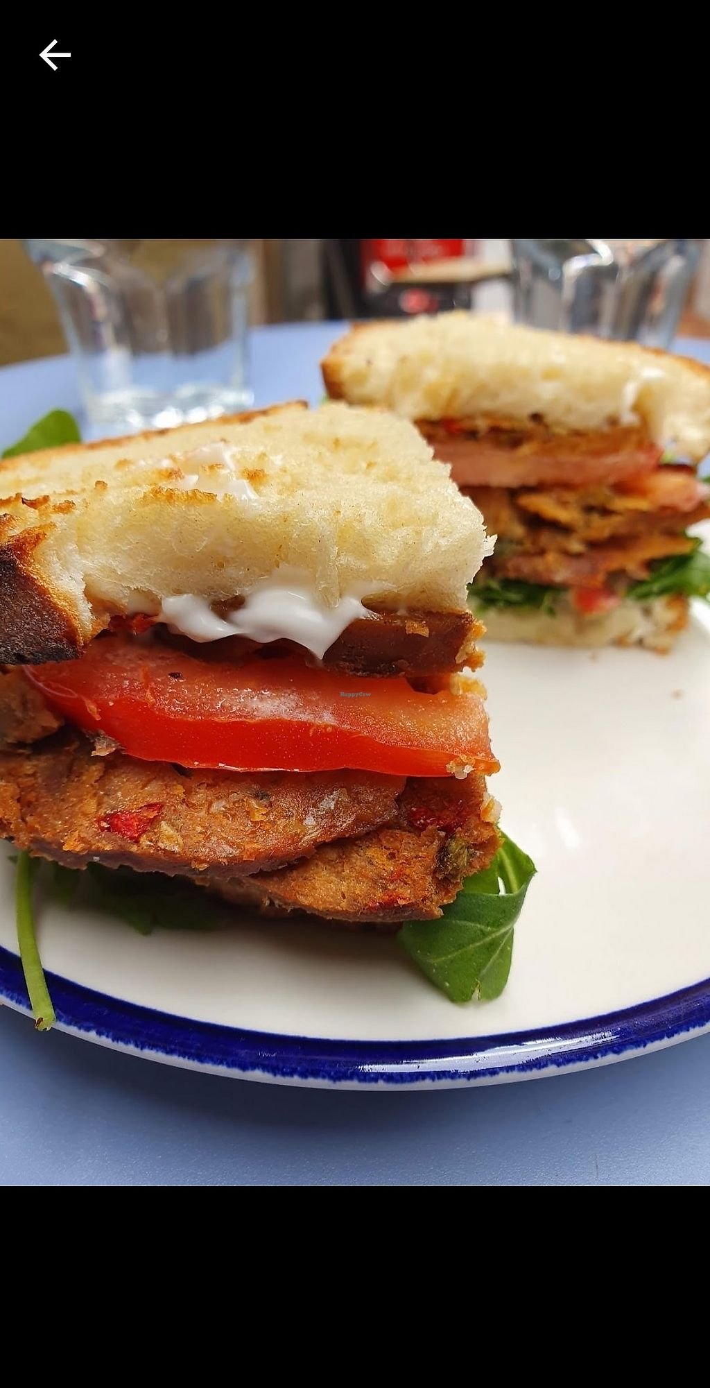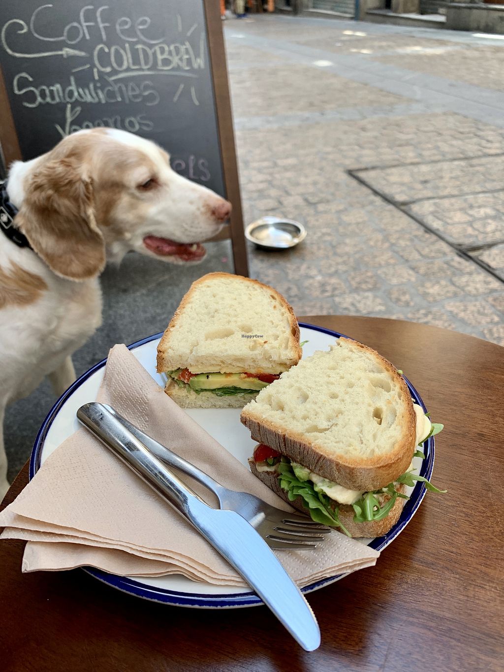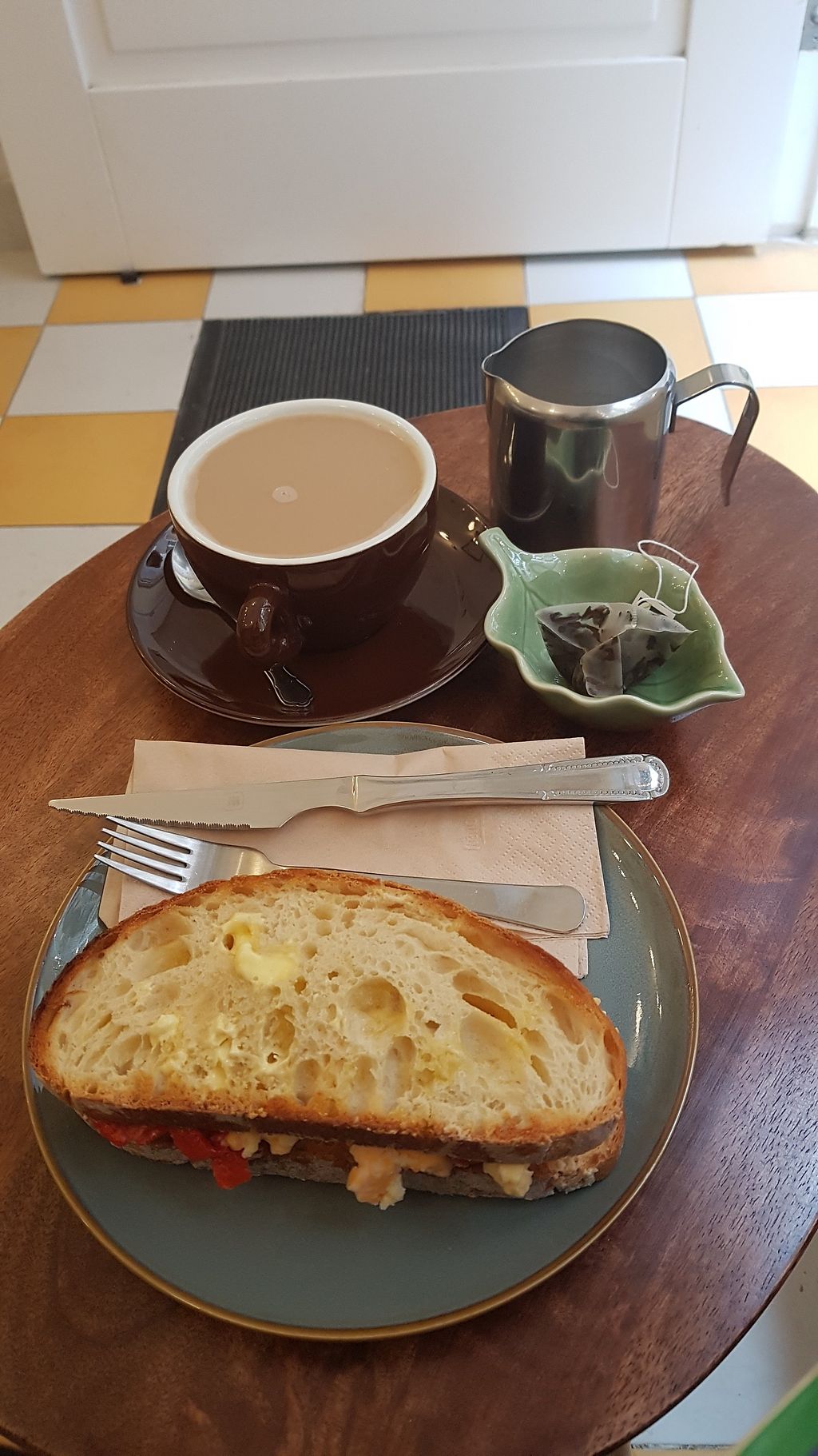 Sandwich pimiento "cheese" acompañado de té negro con bebida de soja