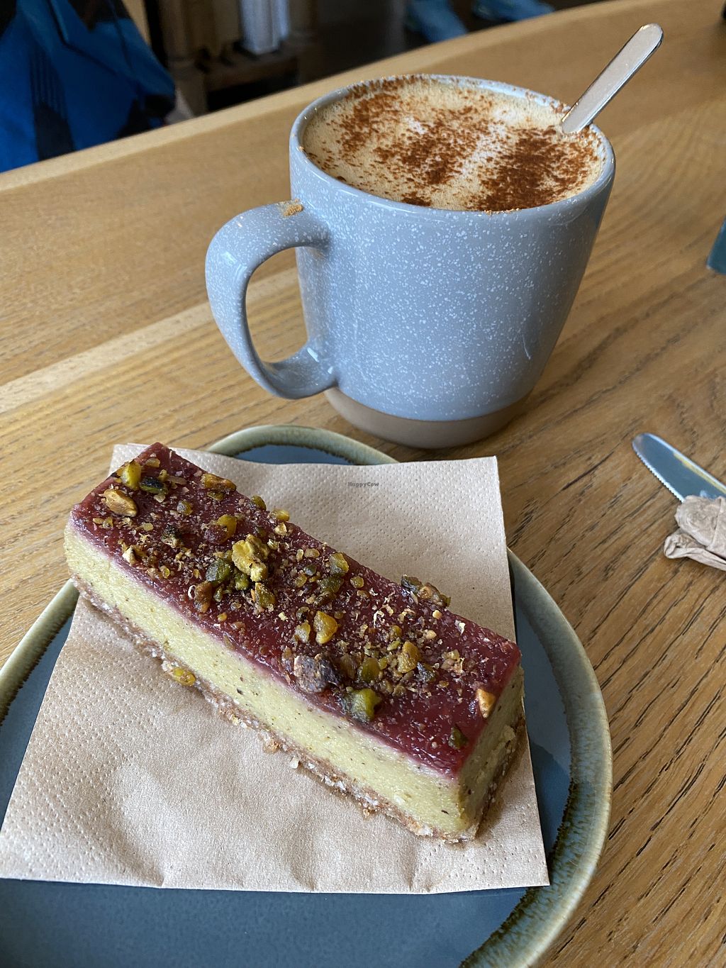 Great cake and coffee. This place serves a range of infused baked goods. Chilled atmosphere and indoor seating.