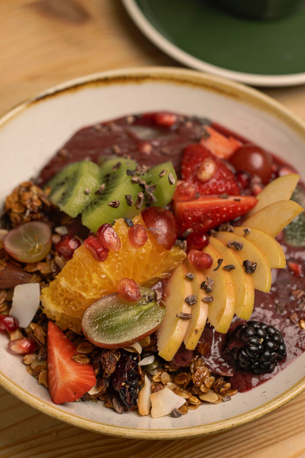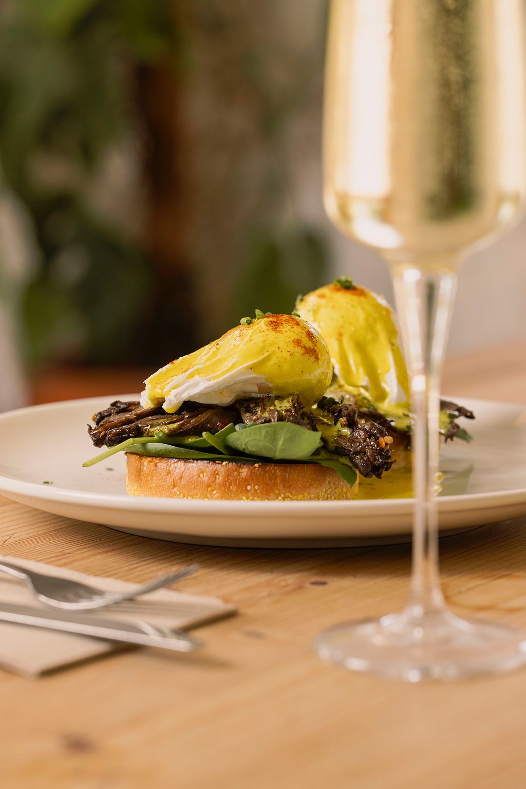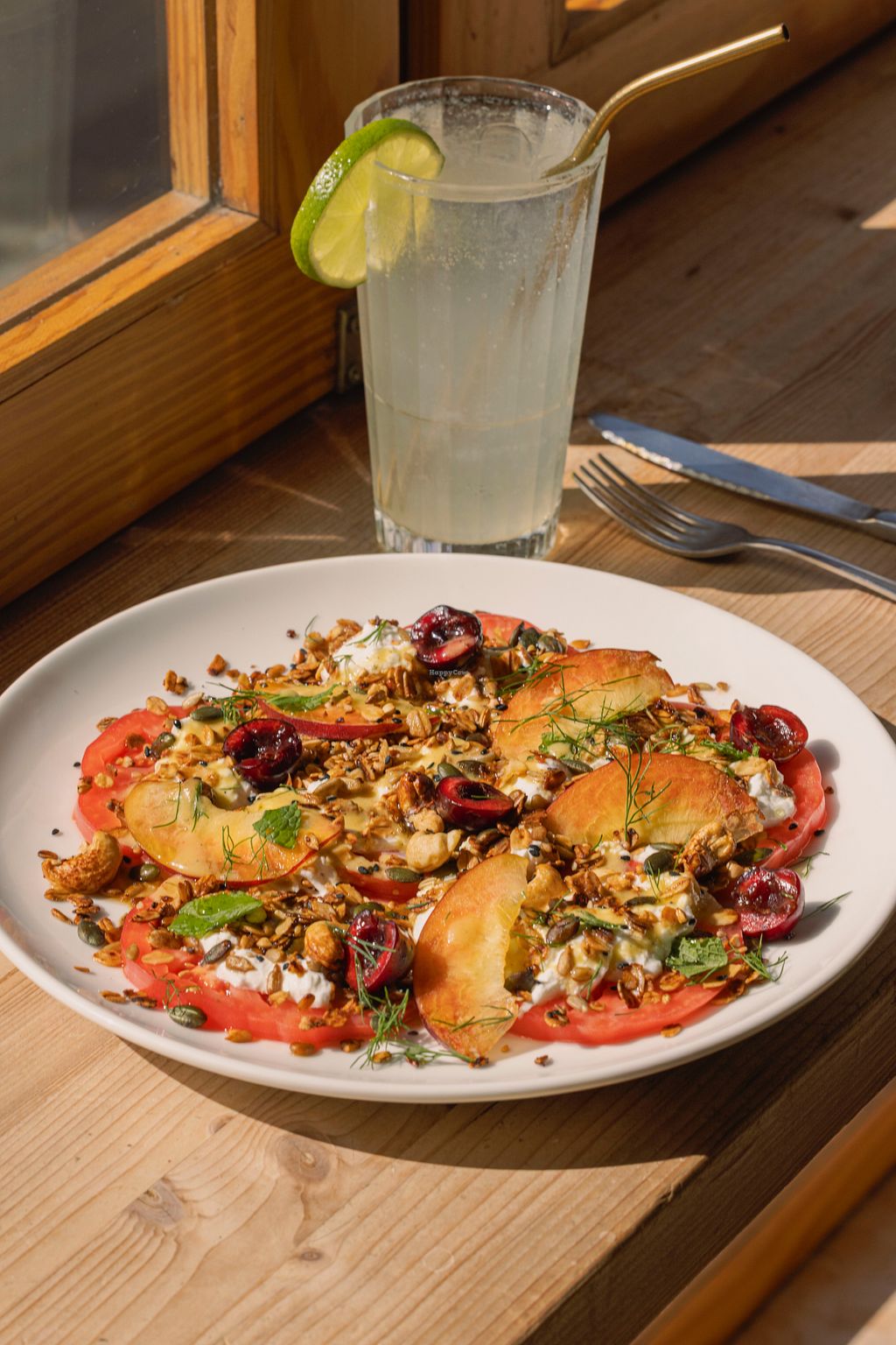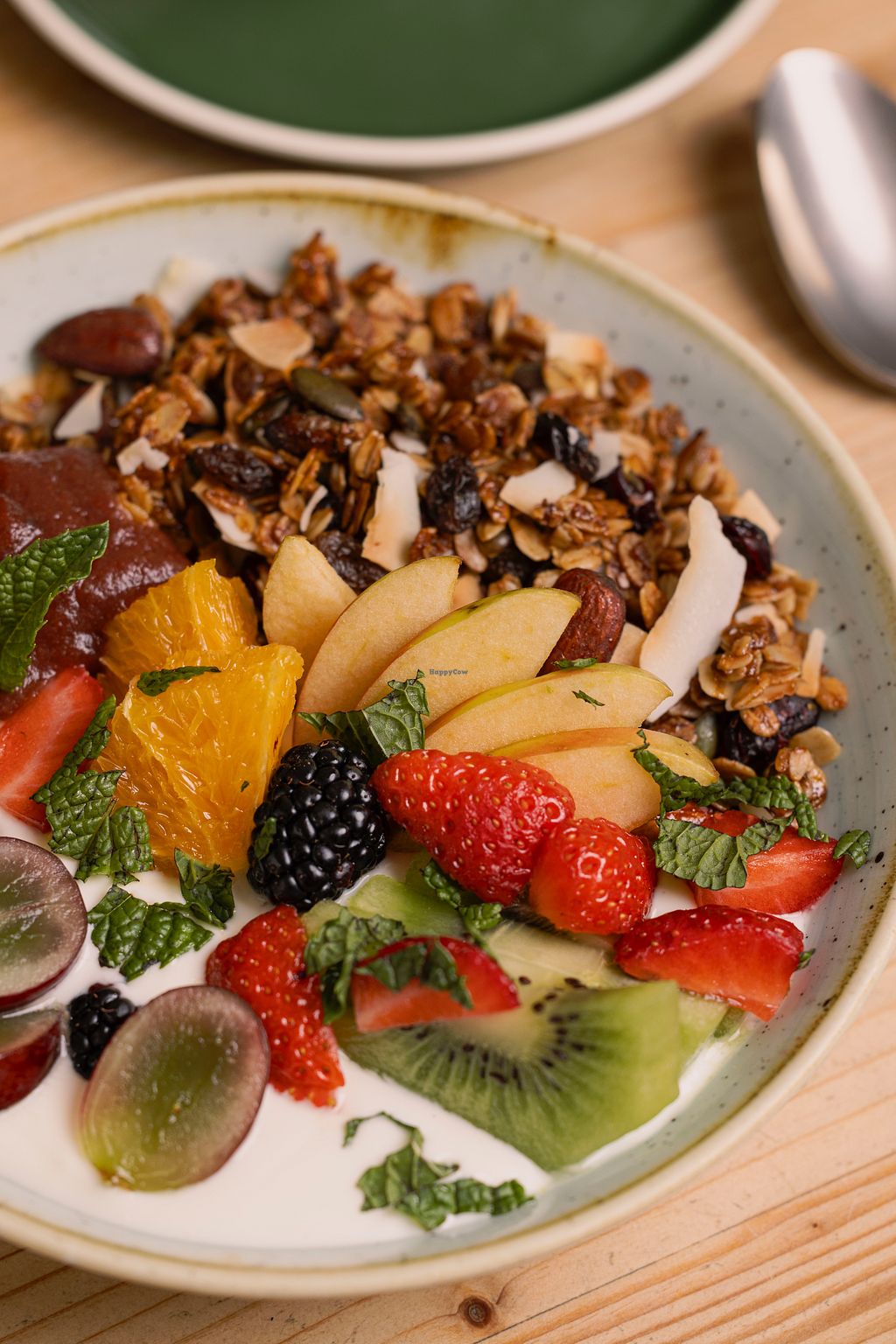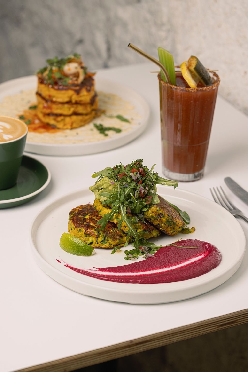 A vegetarian breakfast and brunch café that offers sweet and savoury dishes, speciality coffee, signature lattes, cold-pressed juices, and breakfast cocktails. Vegan options are labelled, such as açaí bowl, kimchi pancakes, and falafel wrap. Planted-based milk is available for drinks. Open Mon-Fri 08:30-16:00, Sat-Sun 09:00-16:00.
