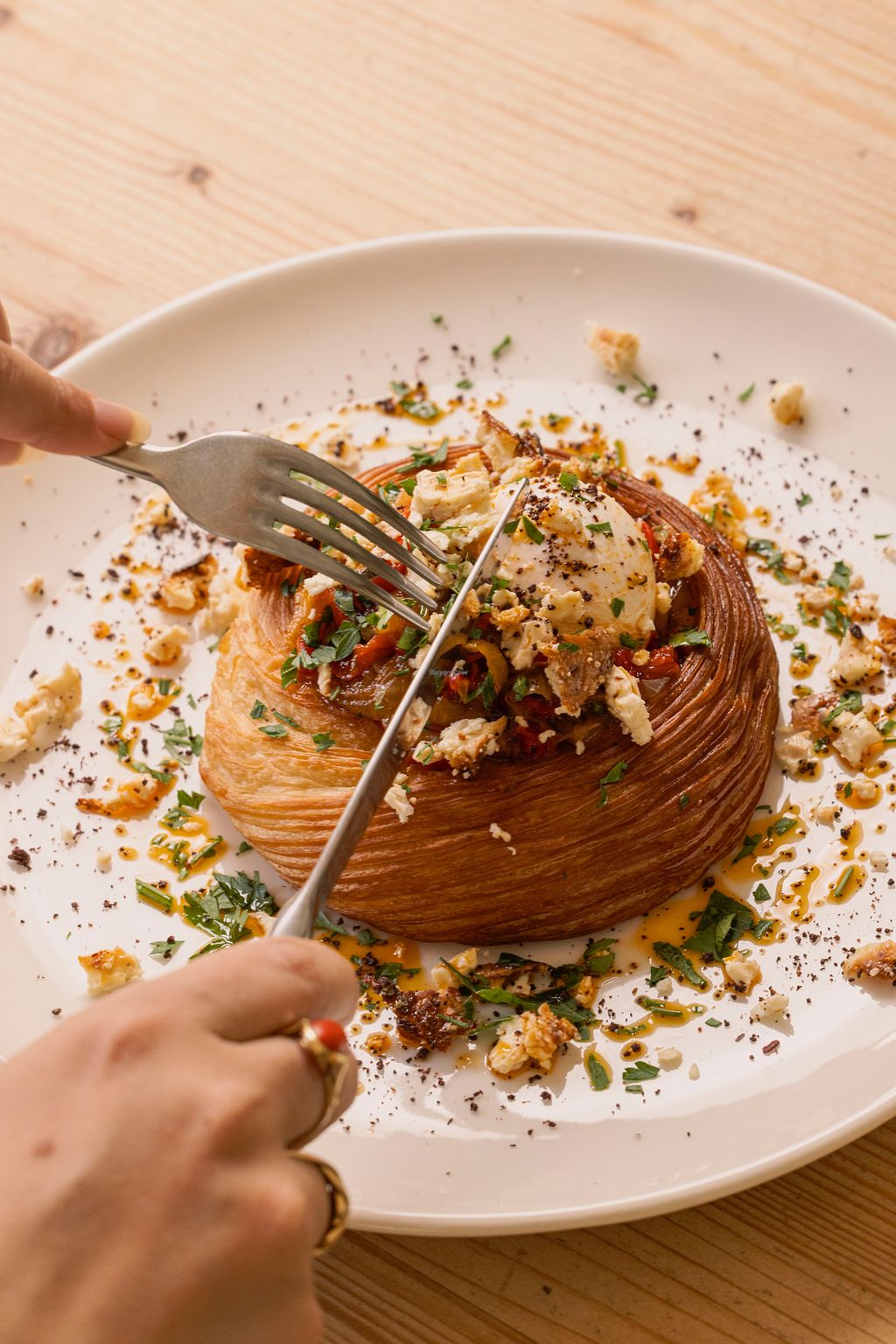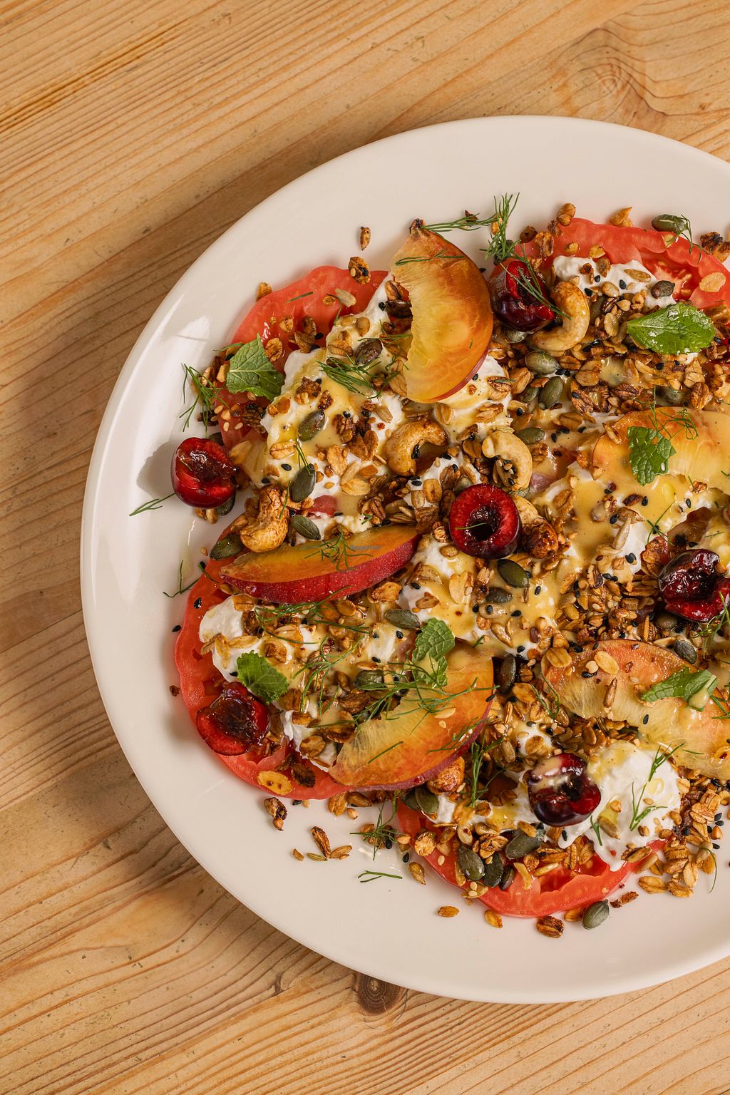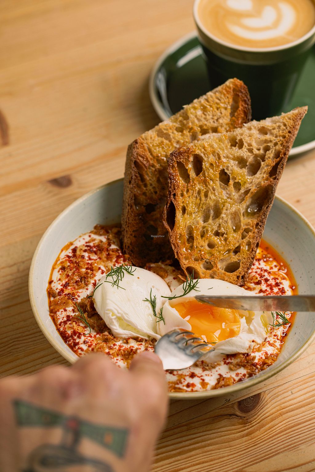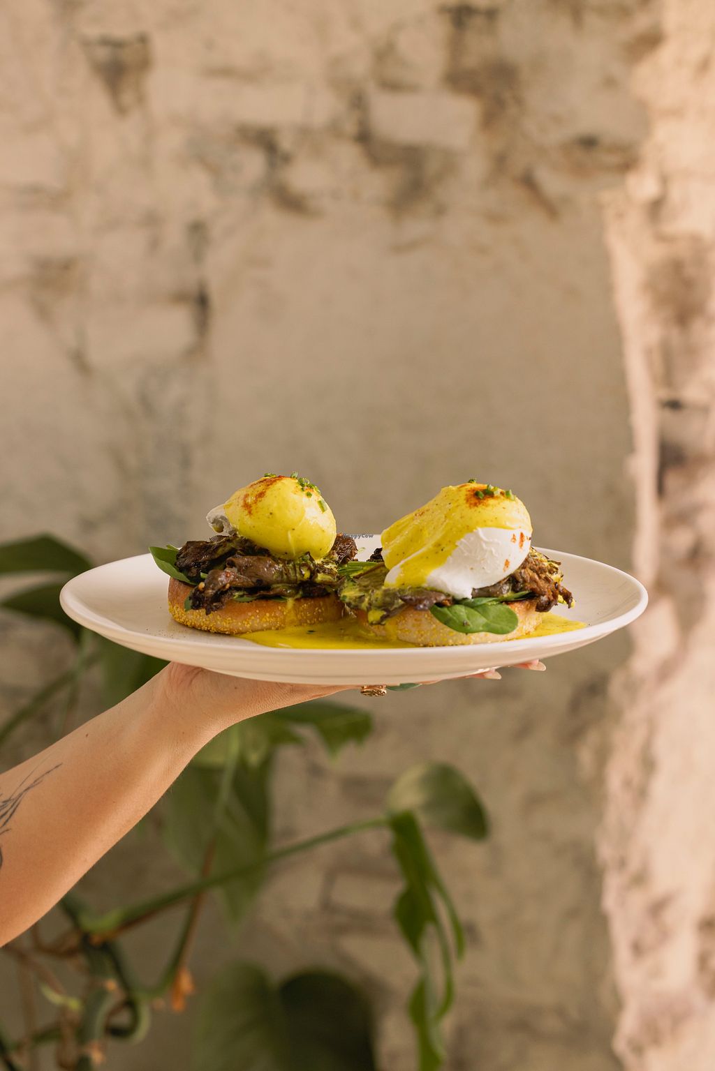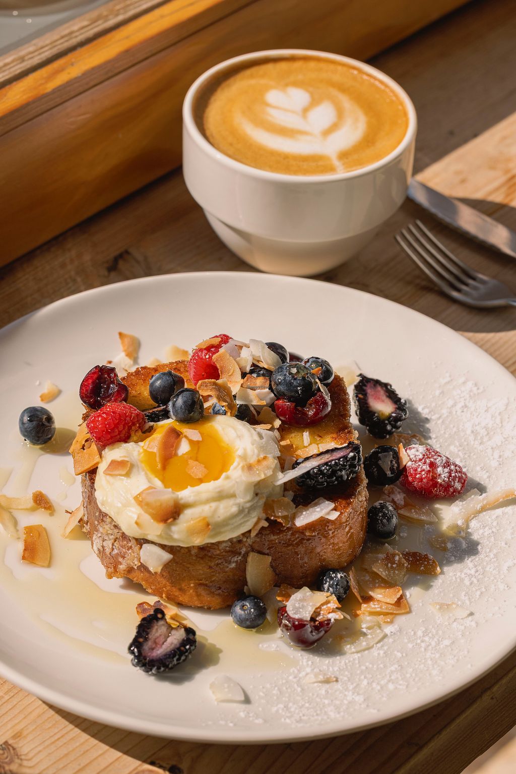A vegetarian breakfast and brunch café that offers sweet and savoury dishes, speciality coffee, signature lattes, cold-pressed juices, and breakfast cocktails. Vegan options are labelled, such as açaí bowl, kimchi pancakes, and falafel wrap. Planted-based milk is available for drinks. Open Mon-Fri 08:30-16:00, Sat-Sun 09:00-16:00.