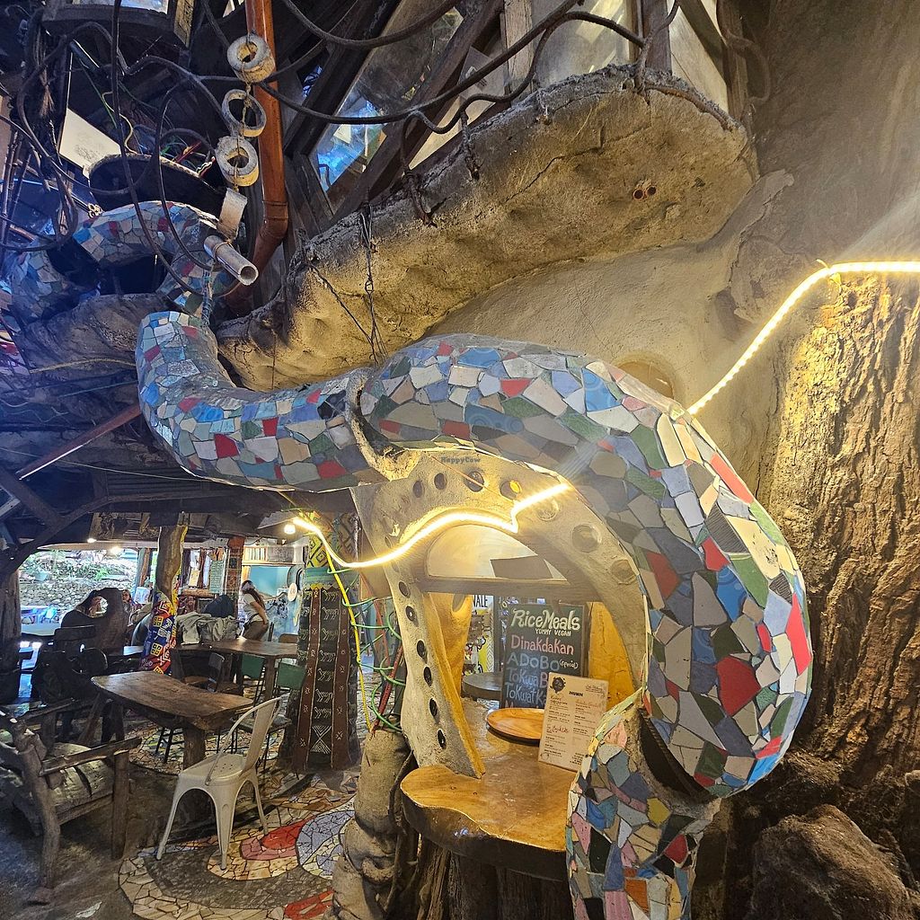 Burger joint built into a tree. Offers four vegan burgers, traditional Filipino rice meals, a dessert, a selection of fermented drinks, coffee, tea, and plant-based milk is available. Open Mon-Wed 10:00am-7:00pm, Fri-Sun 10:00am-8:00pm. Closed Thur.