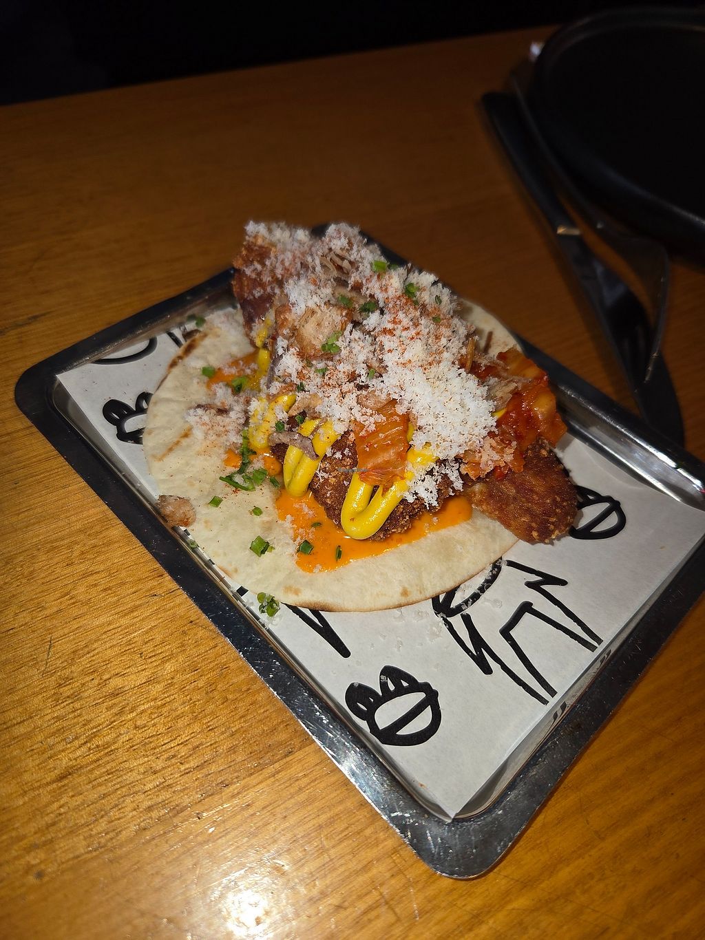 Korean chorizo "hot dog" (also an eggplant taco)