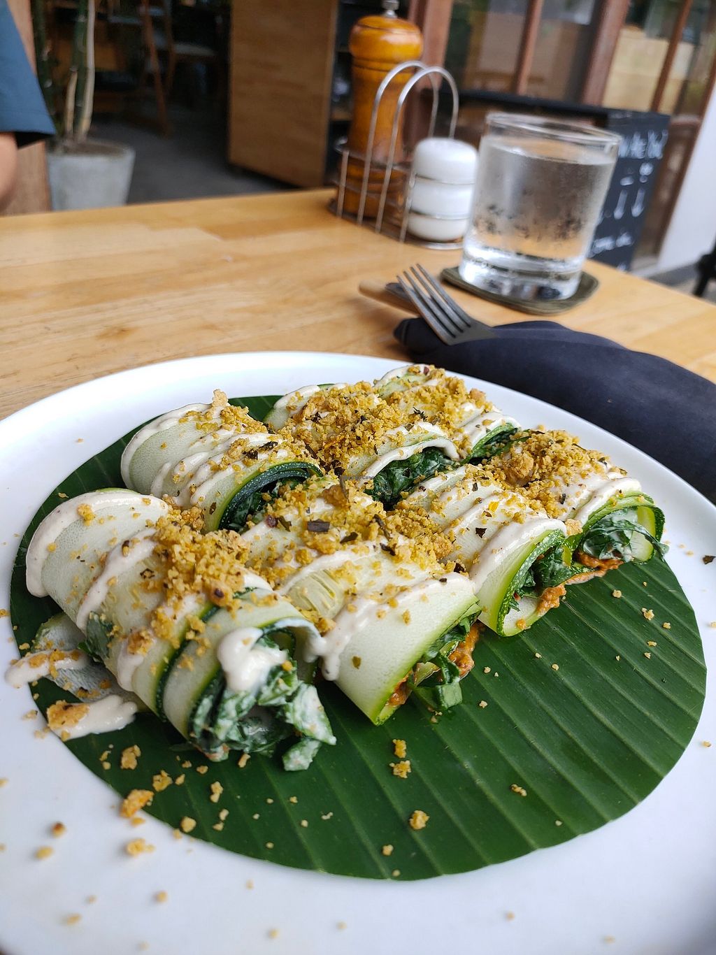 Raw Cannelloni (zucchini, tomato & herb pesto, spinach ricotta, cashew…