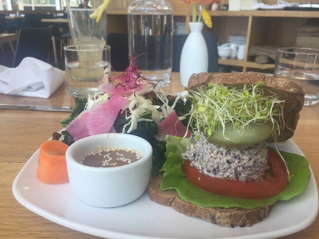 When I found this place, I was estatic. The food is almost entirely raw and absolutely delicious. I've tried multiple things on the menu and I haven't found anything I don't like. The veggie burger is always a go to. It's a nice place to have a bite to eat while watching all the people walk downtown. My only complaints are with the dessert portions (Cheesecake was small but delicious!!) and speed of service. However, everyone there is super friendly!