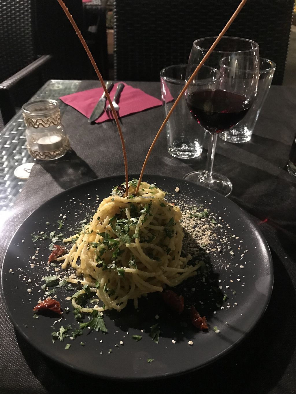 Italian cuisine and amazing desserts! It's a bit out of the way, but not too far. We rented a car and drove there one night. Most of the things on the menu are vegan, some vegetarian options. If you want traditional Italian pasta this is the place!! AND if you go you have to try the dessert. We had the chocolate cake which was the best I've had since going vegan.