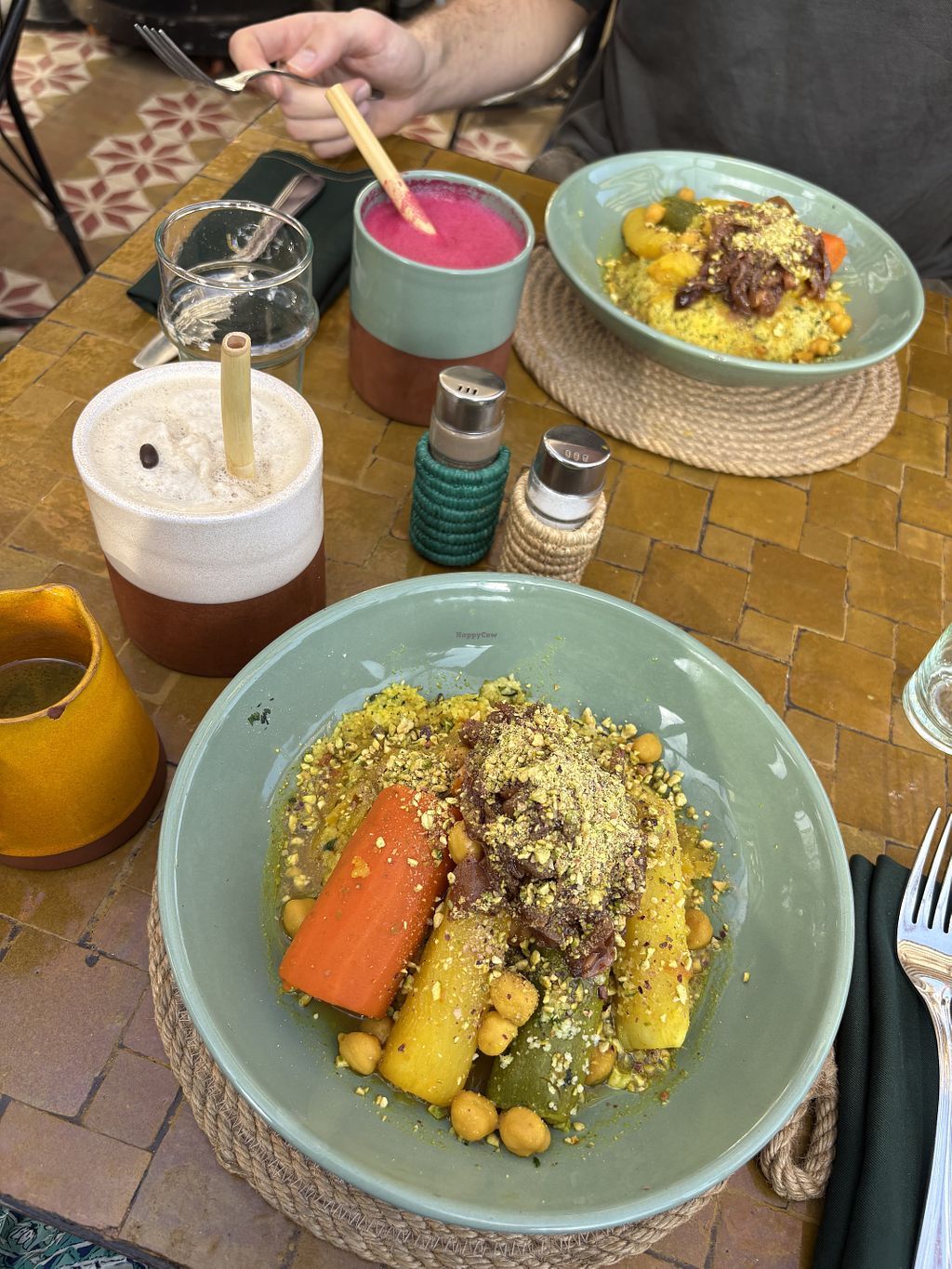 We just had main courses and there was only one vegan option, the couscous. Over the last week in Marrakech I have eaten a lot of couscous but this was in a different league to the rest, so flavoursome. There were vegetarian mains which could be made vegan and starters.