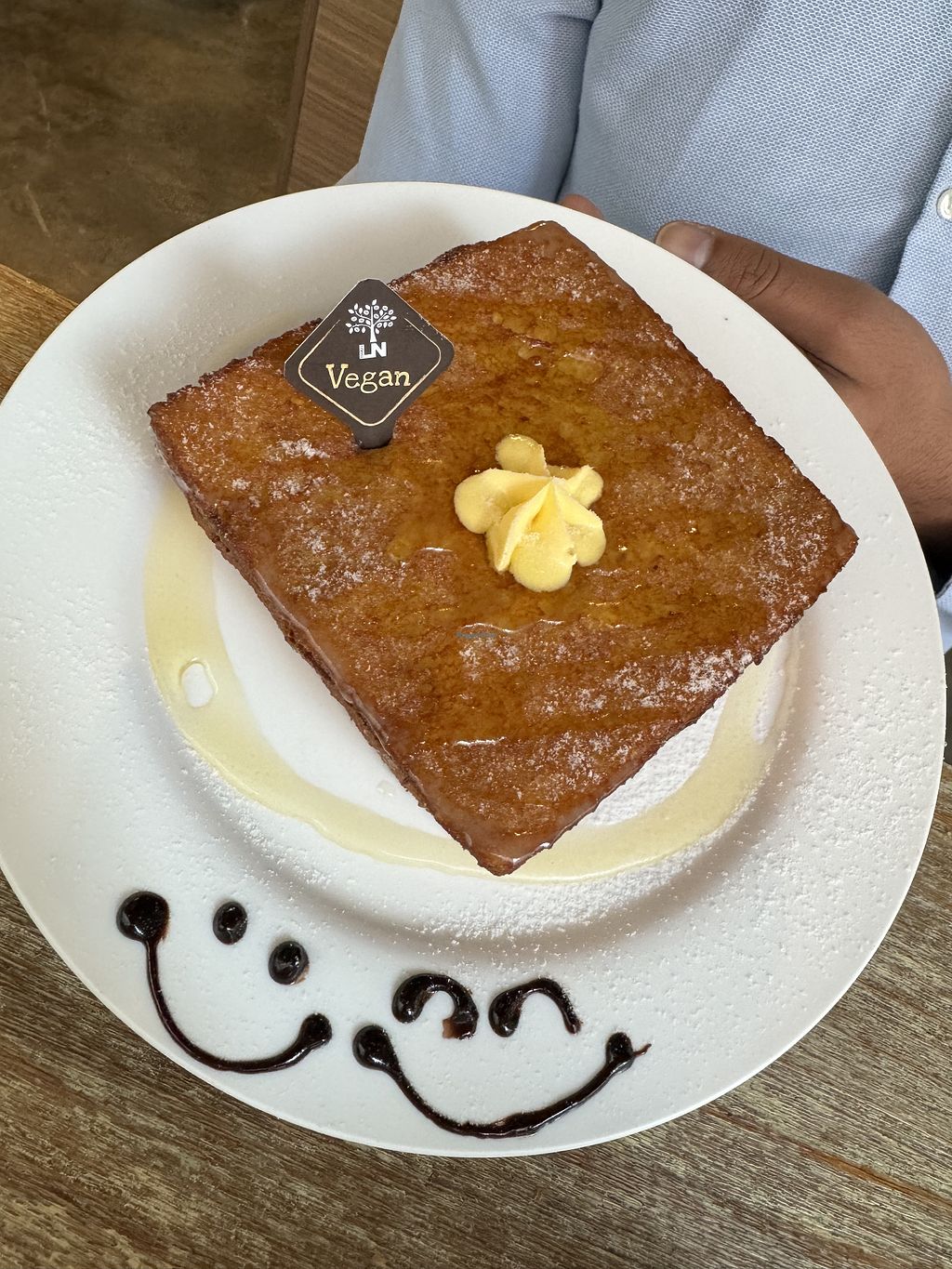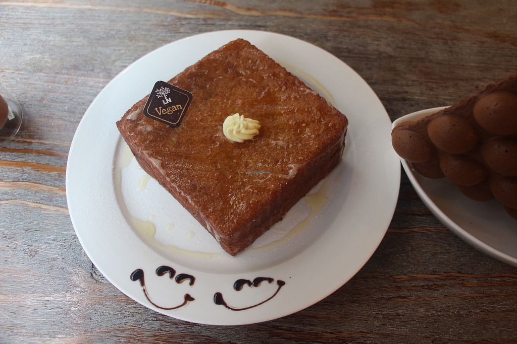 Was in Hong Kong and knew I wanted to check this place out. Already had lunch plans but stopped in to have tea. The toast was the closest thing I could find to a chachaanting and of course you can't go to Hong Kong and not try the egg waffles. They helpfully let me know right away that the juice wasn't fresh, after asking further she let me know it was out of the box but it was 100% juice. It was a great vegan place to visit to take a break from the bustling city.