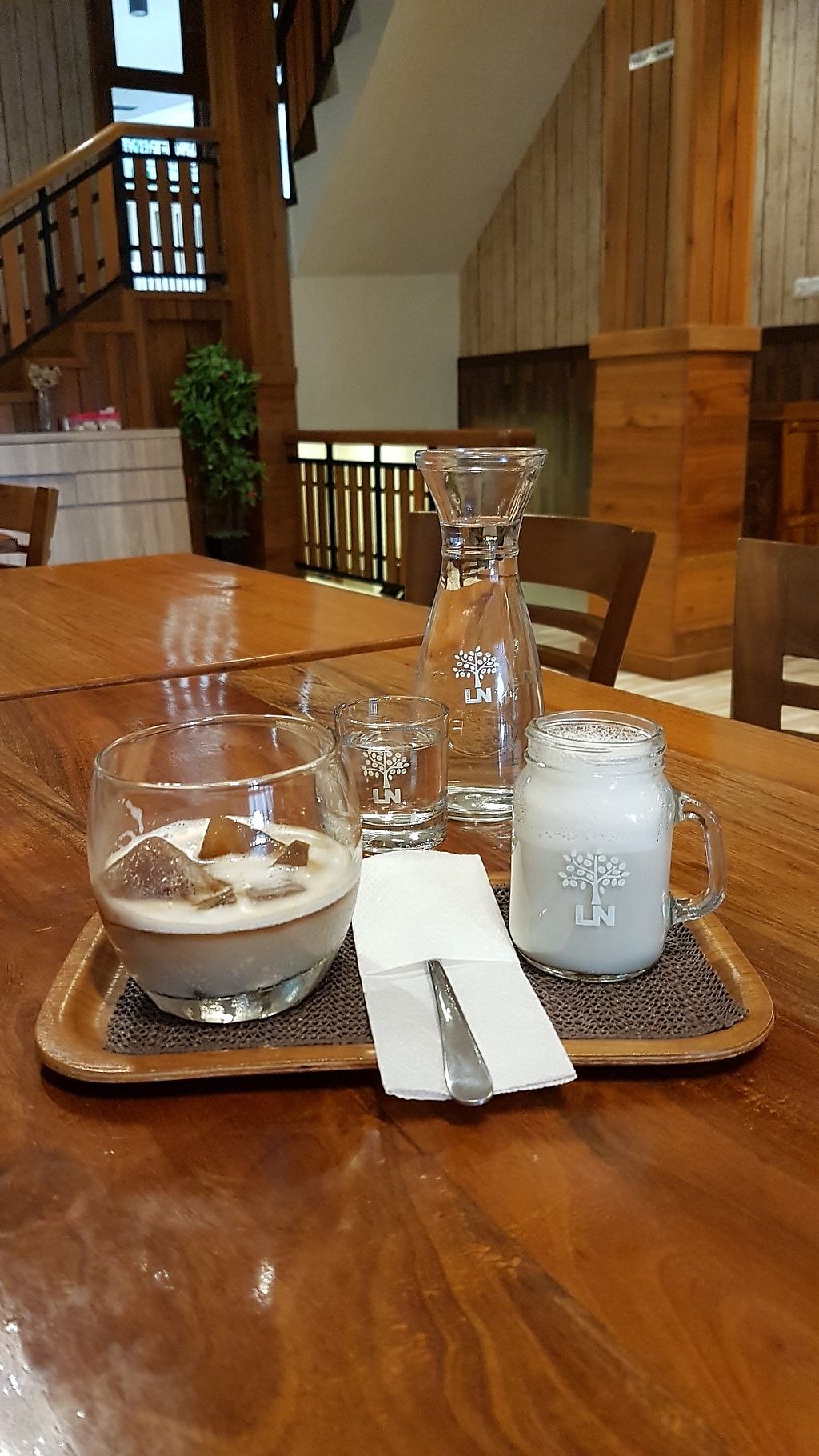 Coffee plus milk (which I think soy/oat milk). I think it's good
