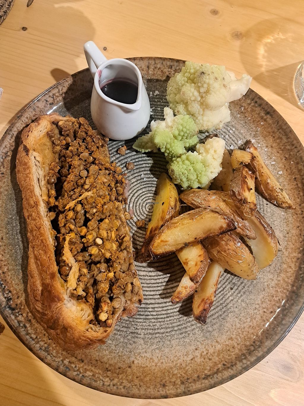 In Cervinia it's very hard to find vegan options that have a decent protein source. This place was the only one I found to have clearly labelled vegan and vegetarian options on the menu. I had the lentil strudel which was really delicious. The staff are very friendly too.