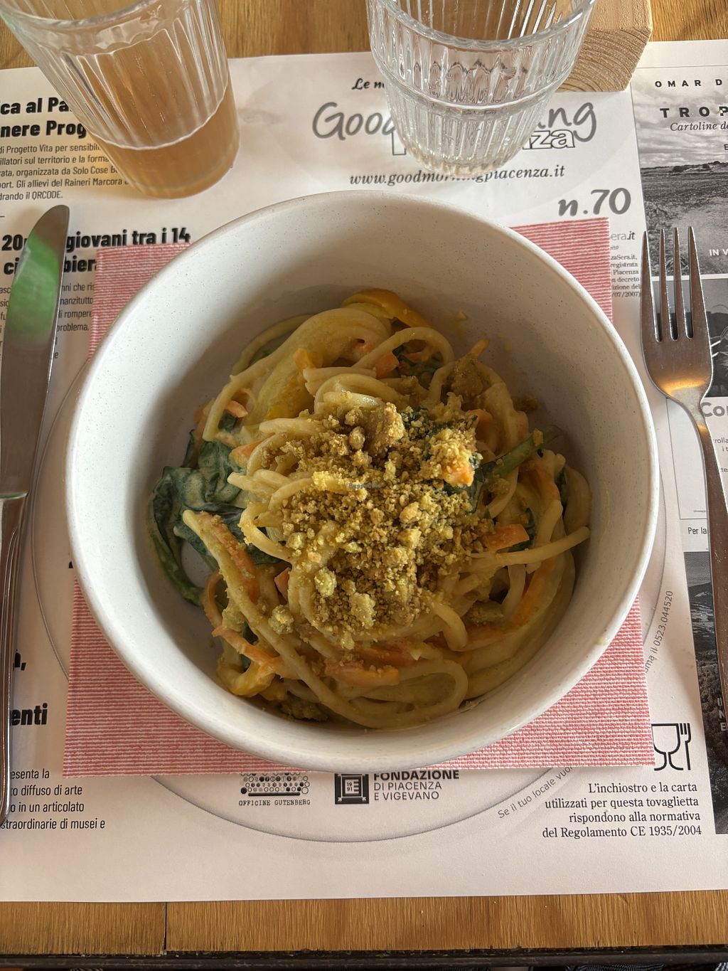 The benefits of having Happy Cow installed! We were thrilled to find this restaurant serving Italian food. The artisanal beers we had were very well made; the Psycho IPA is particularly delectable. The food, however, is the star of the show. We thoroughly enjoyed the meal. I can truly recommend this place to anyone fortunate enough to make it to Piacenza.