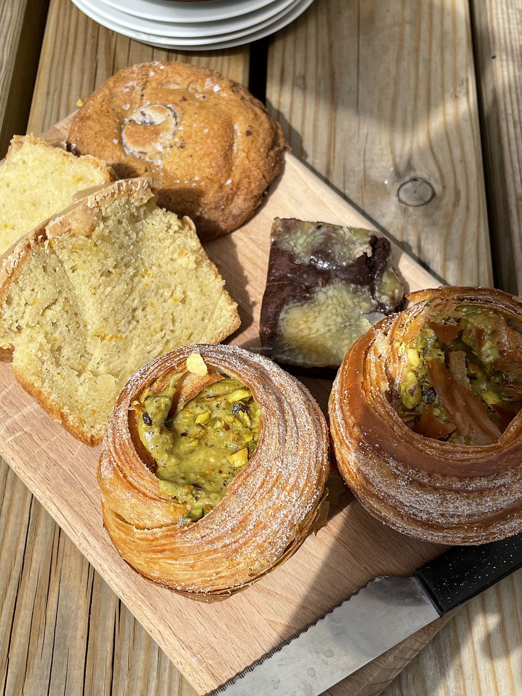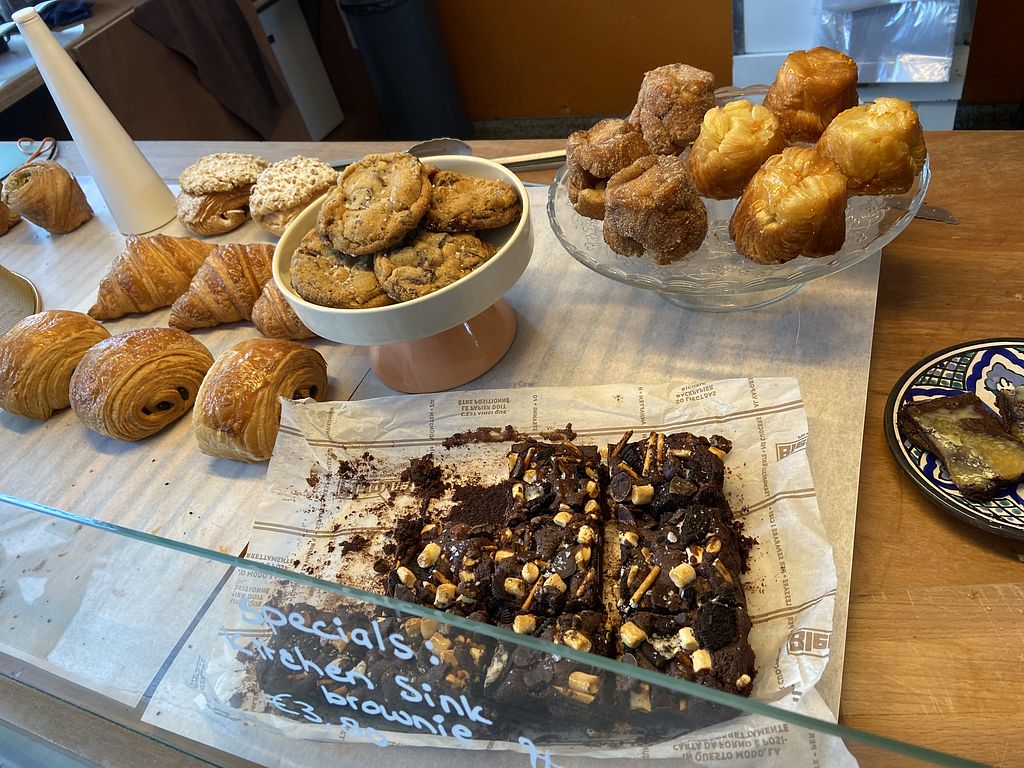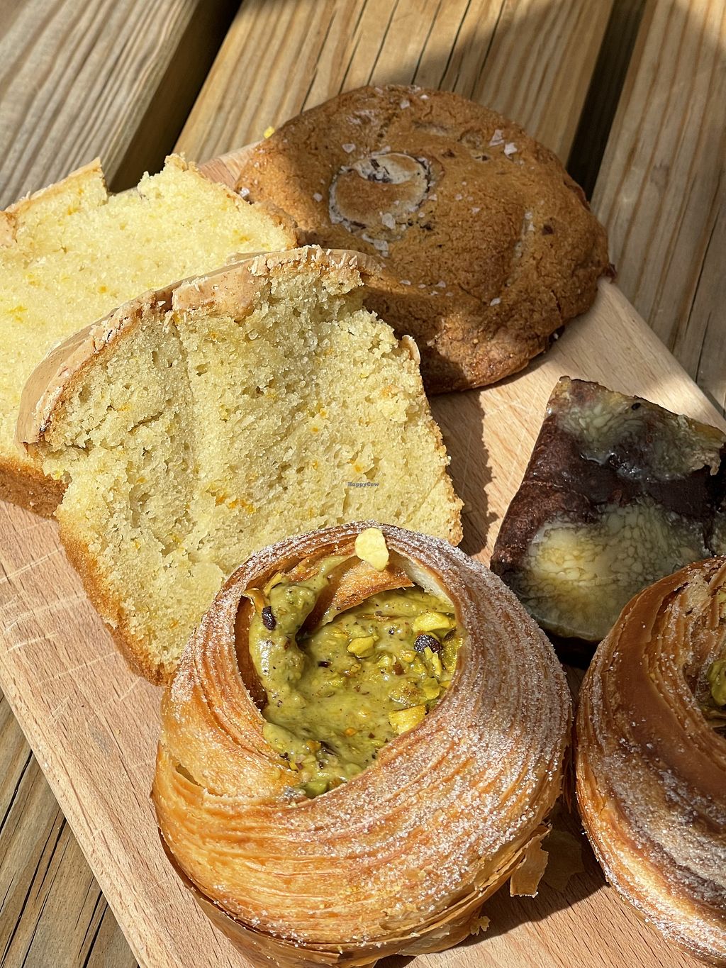 pistachio cruffin, brownie, cookie, orange white chocolate cake