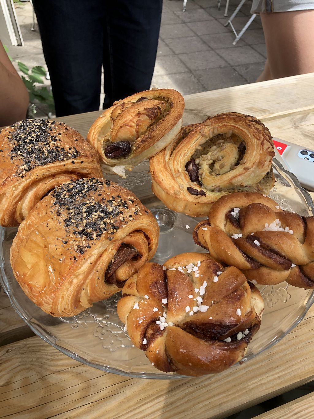 pesto bun, seitan cheese, cinnamon bun