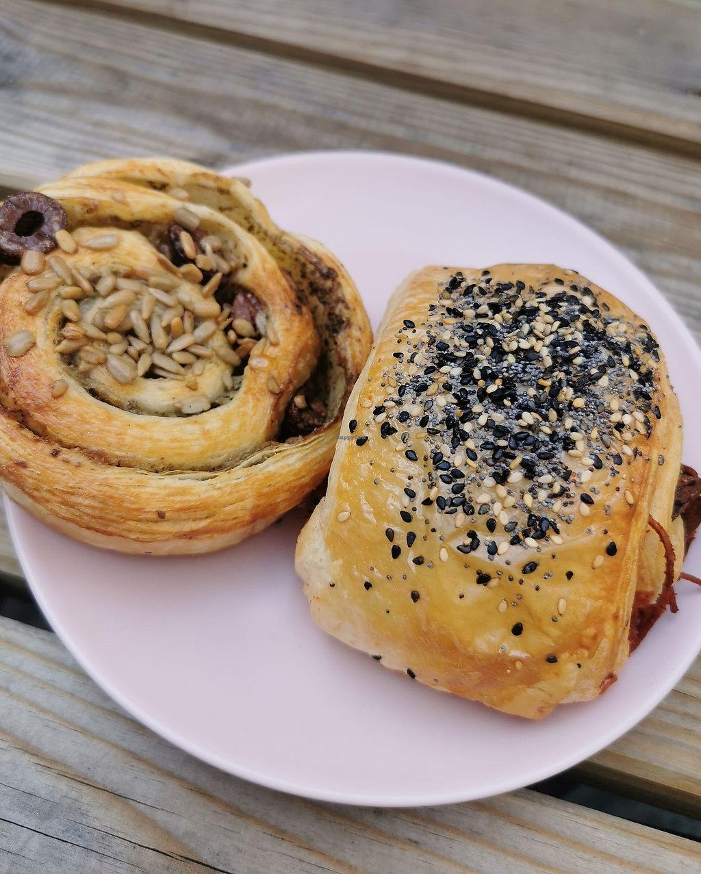 Pesto roll and seitan roll, both very tasty but the seitan one is out …
