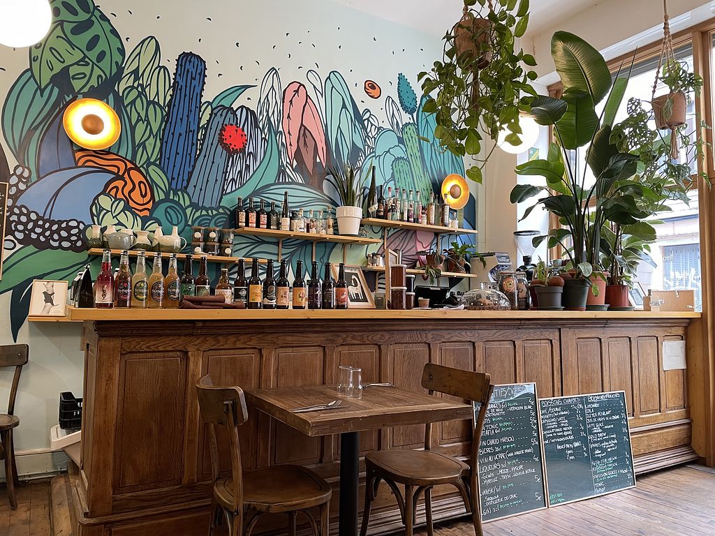 Vegan restaurant serving organic and local products. Serves a weekly changing lunch menu alongside a range of pastries. Fully vegan since Mar 2021. Open Mon 16:00-23:30, Tue-Thu 15:00-23:30, Fri 16:00-23:30. Closed Sat-Sun.