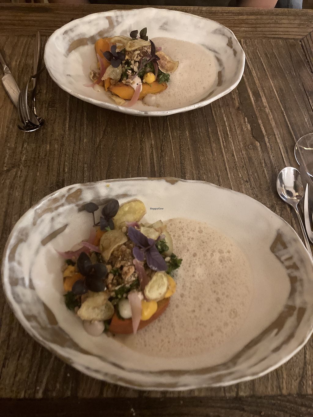 Absolutely beautiful vegan meal, we did the 3 course option so between two of us got to try the whole menu. Everything was delicious, elevated dishes with very fresh flavours. Staff were also very helpful. We loved it super worth going to!