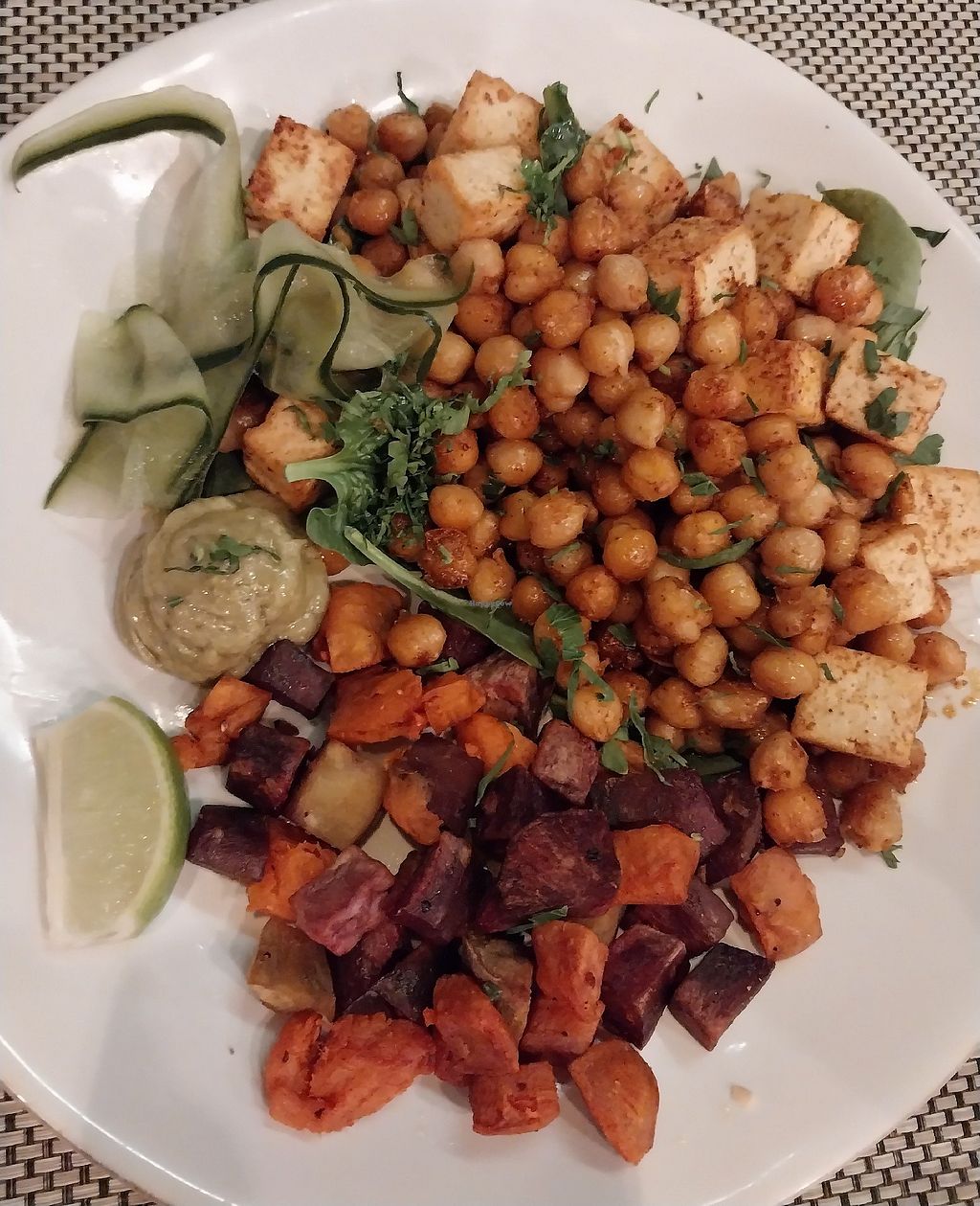 They had no tofu on the day unfortunately, but Had a great meal here of black bean burgers and fresh salad and quinoa- all felt very fresh and crunchy.