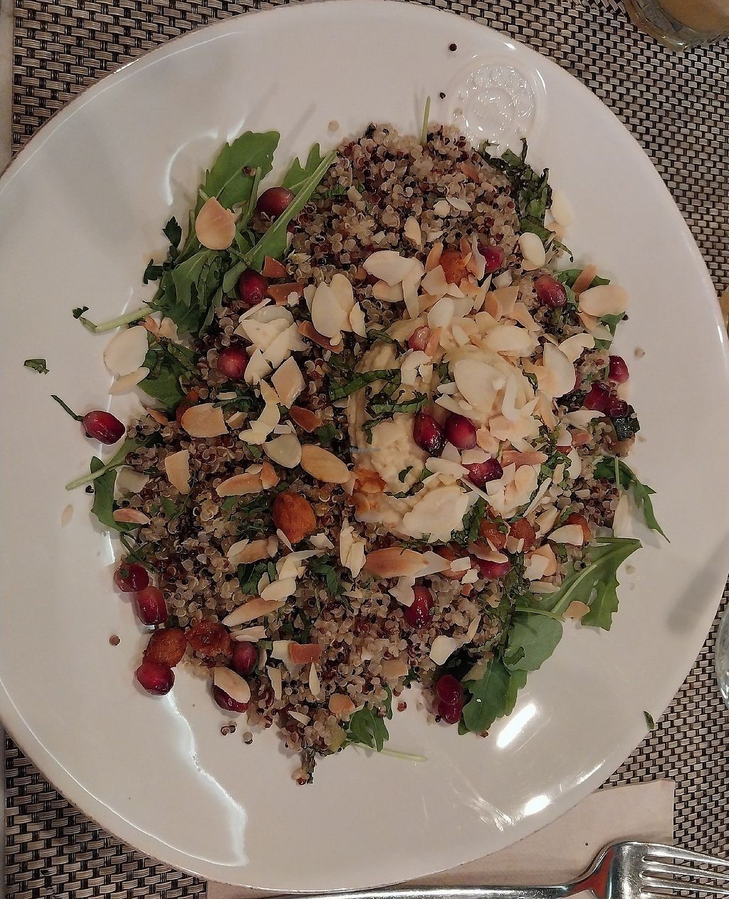 Já fomos almoçar duas vezes. O espaço é muito agradável e o serviço simpático e eficiente. Várias opções vegan. Os pratos partem de um premissa saudável. A comida é razoável, não é óptima mas é agradável. Algumas coisas a melhorar (a quinoa muito mal cozinhada e sem qualquer sabor…). As sobremesas são óptimas!