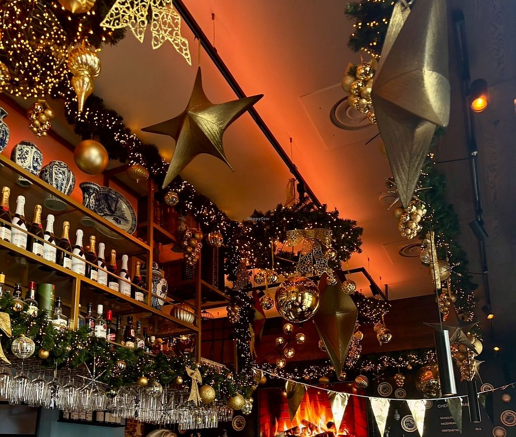 Heerlijk gezeten. Super gezellige locatie en ze hebben een hele mooie kaart. Redelijk veel vegatarische opties en een paar vegan opties.